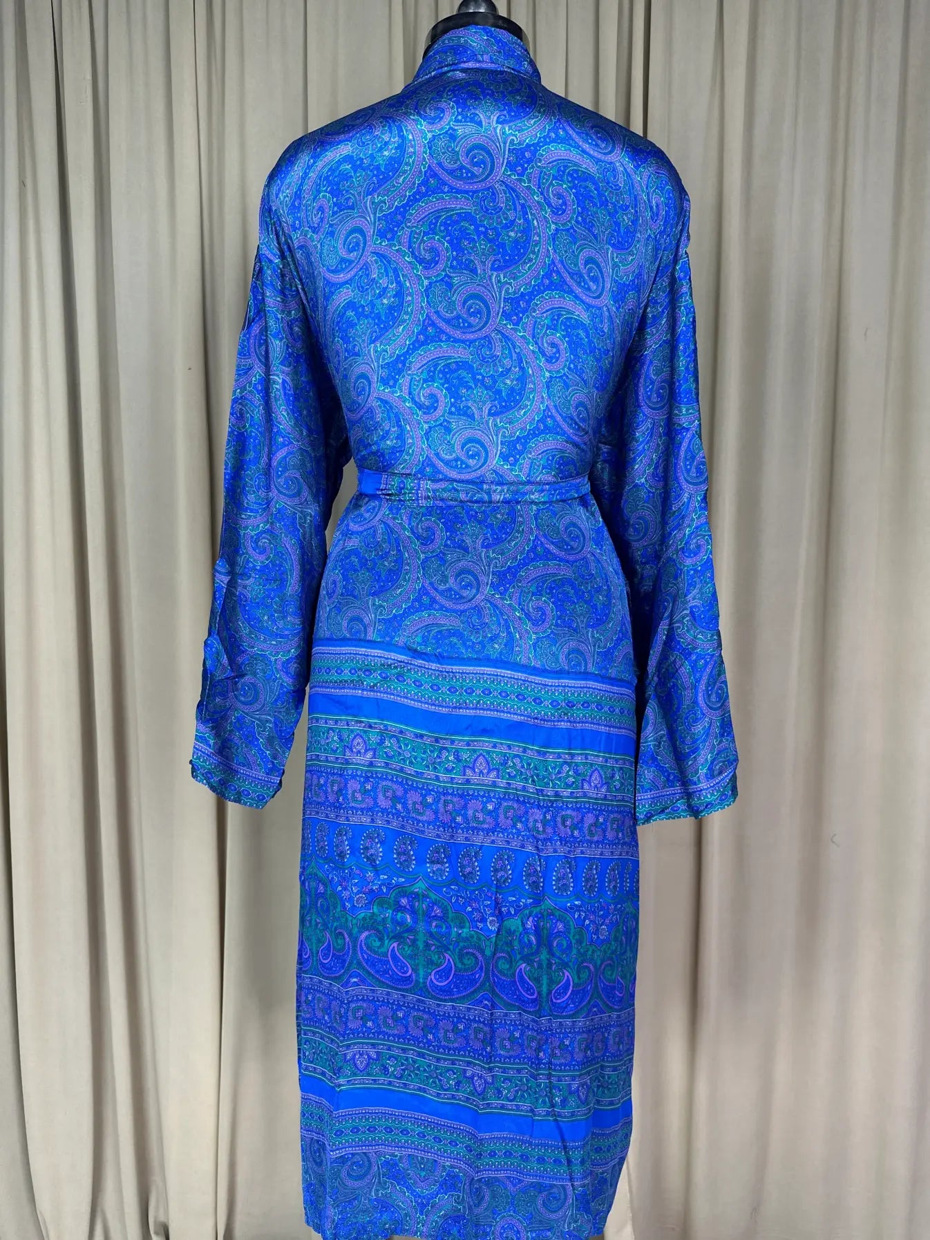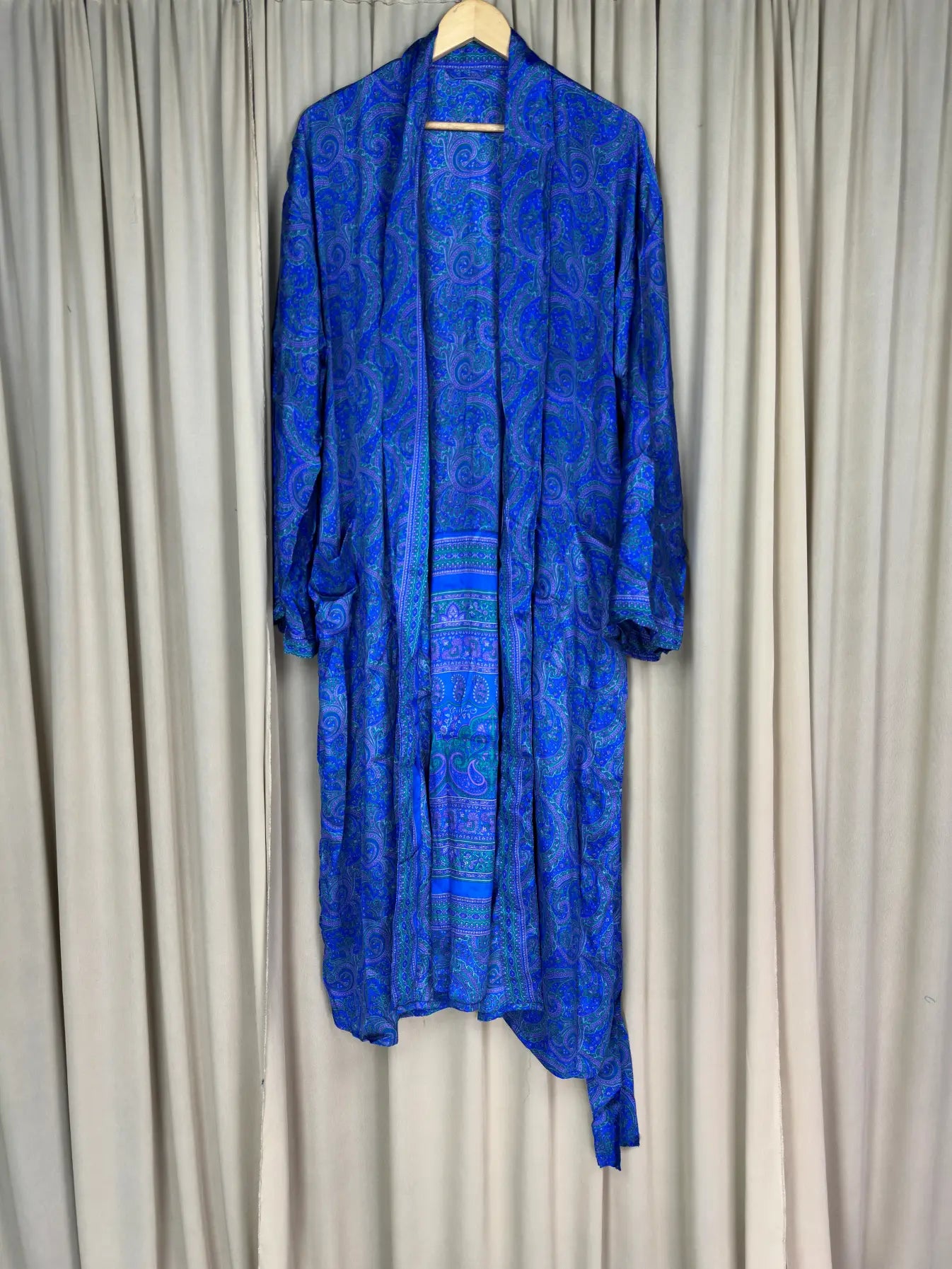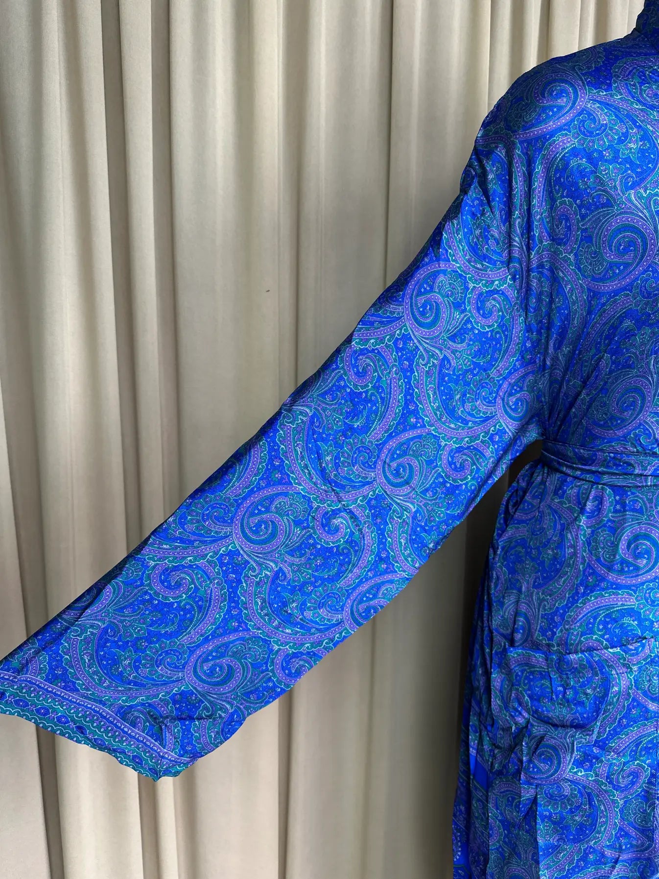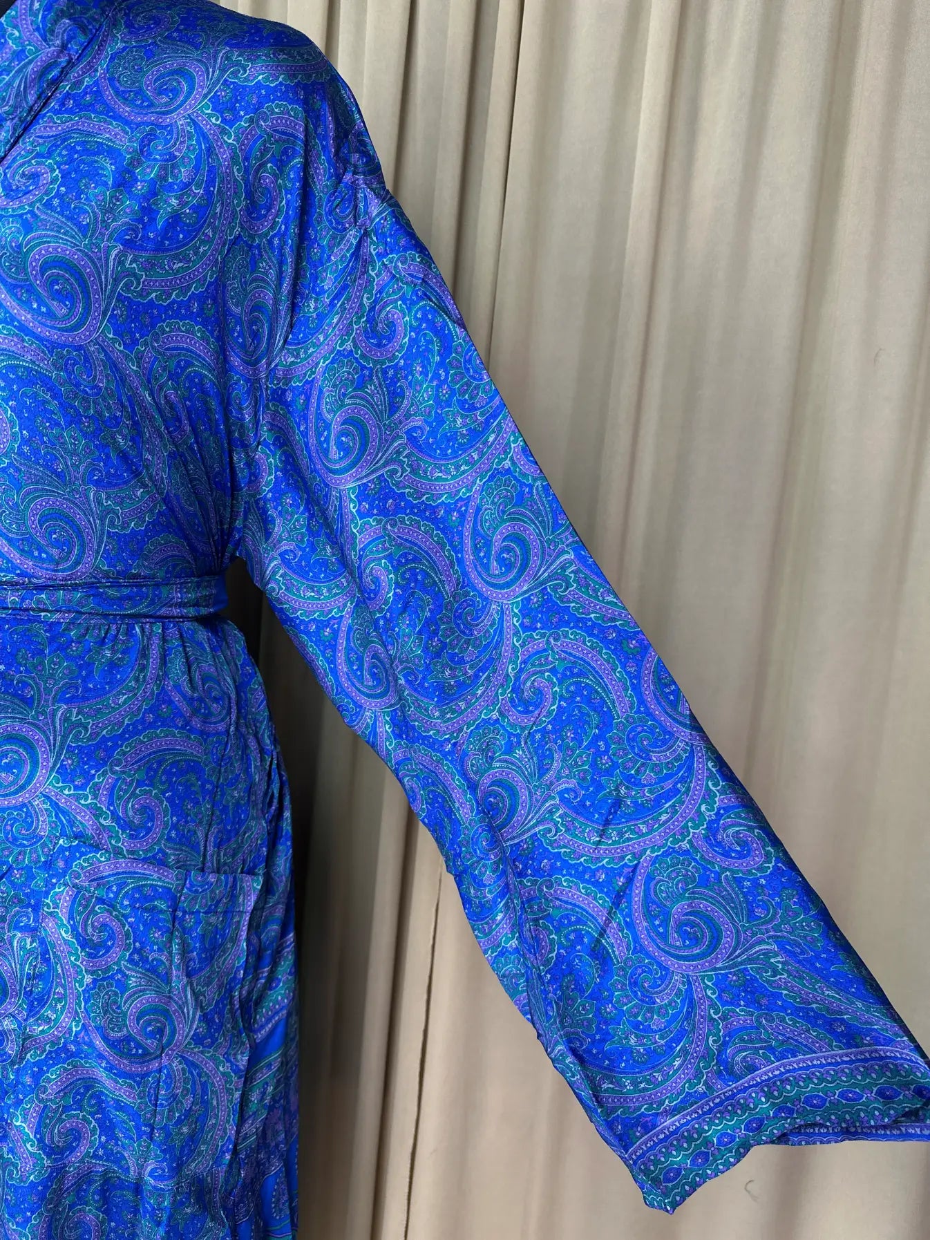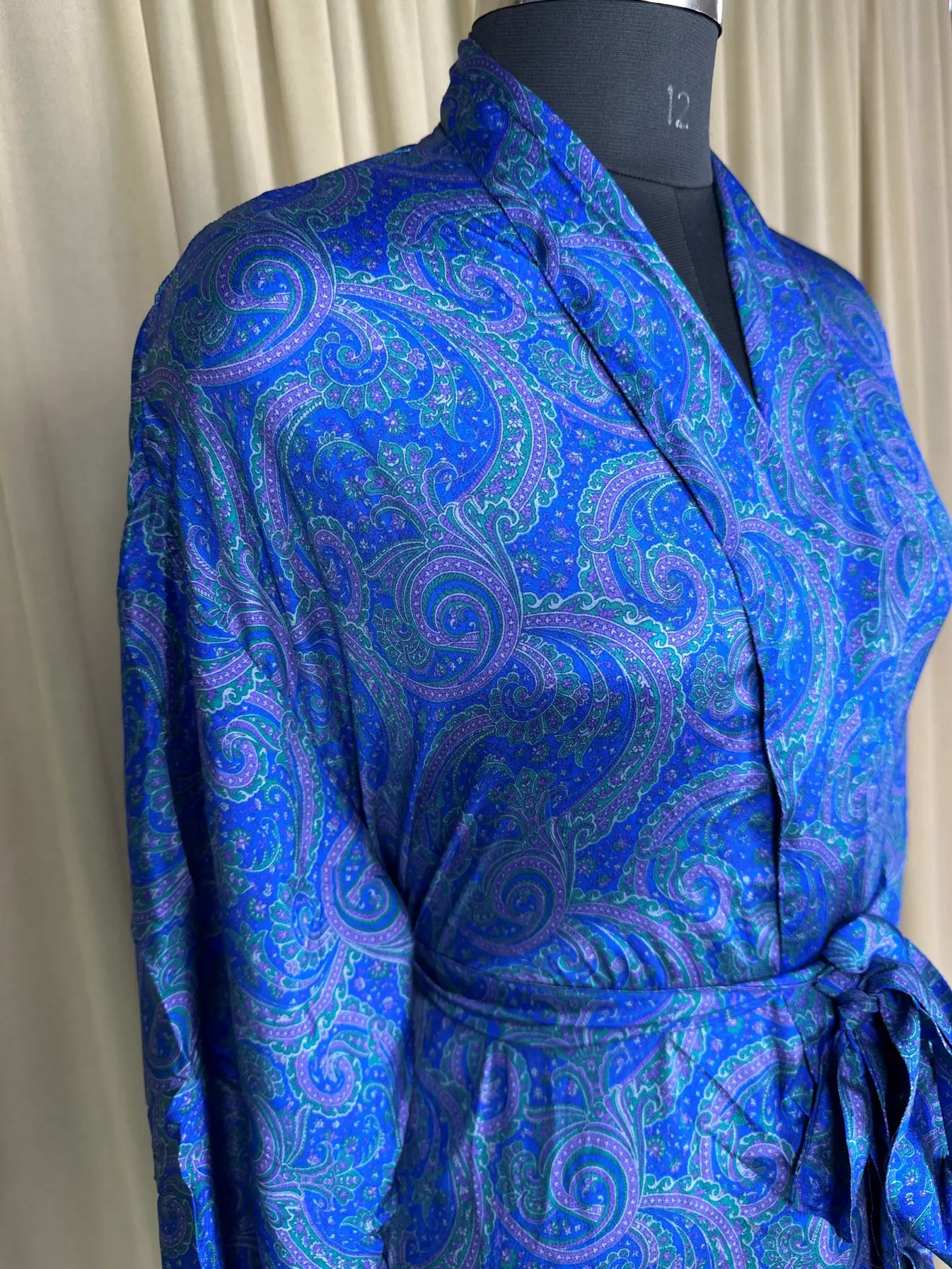 Silky Soft Men’s Kimono Robe, Masculine Elegant Classic Sustainable Vintage House Robe gift, Timeless Comfy Lounge Beach Wear | Blue Paisley