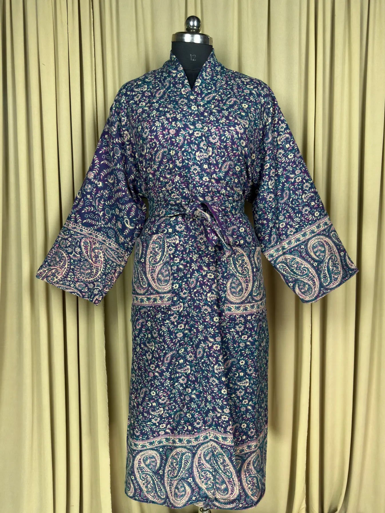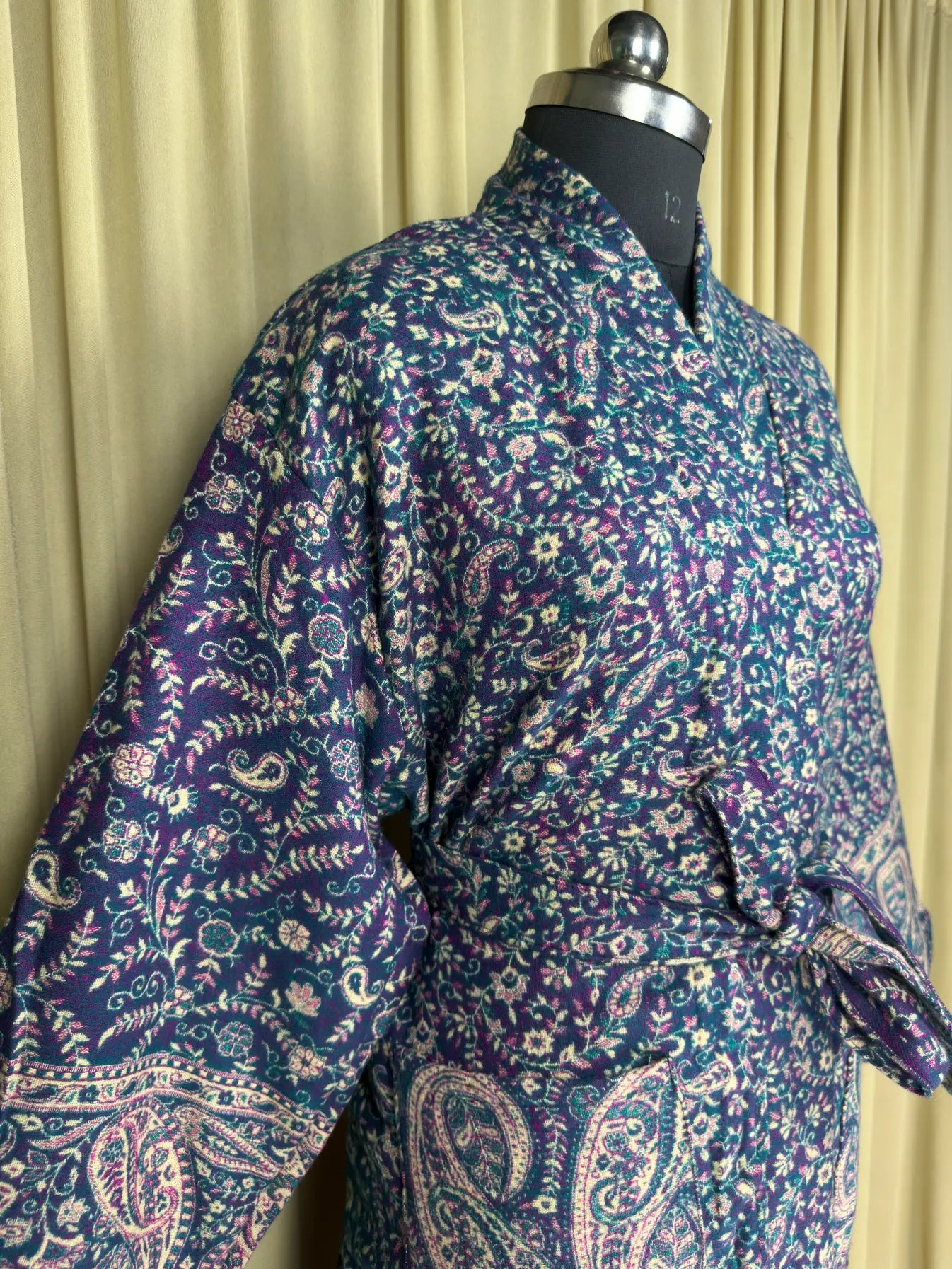 Cosy Wool Kimono in Elegant Paisley prints for this Cold Winter. Particularly known for being Super Warm and simultaneously Light Weight.