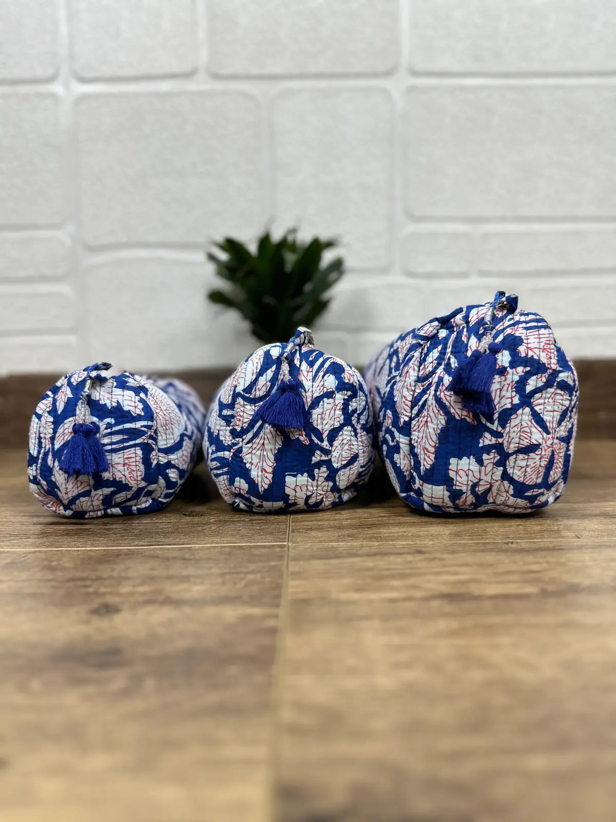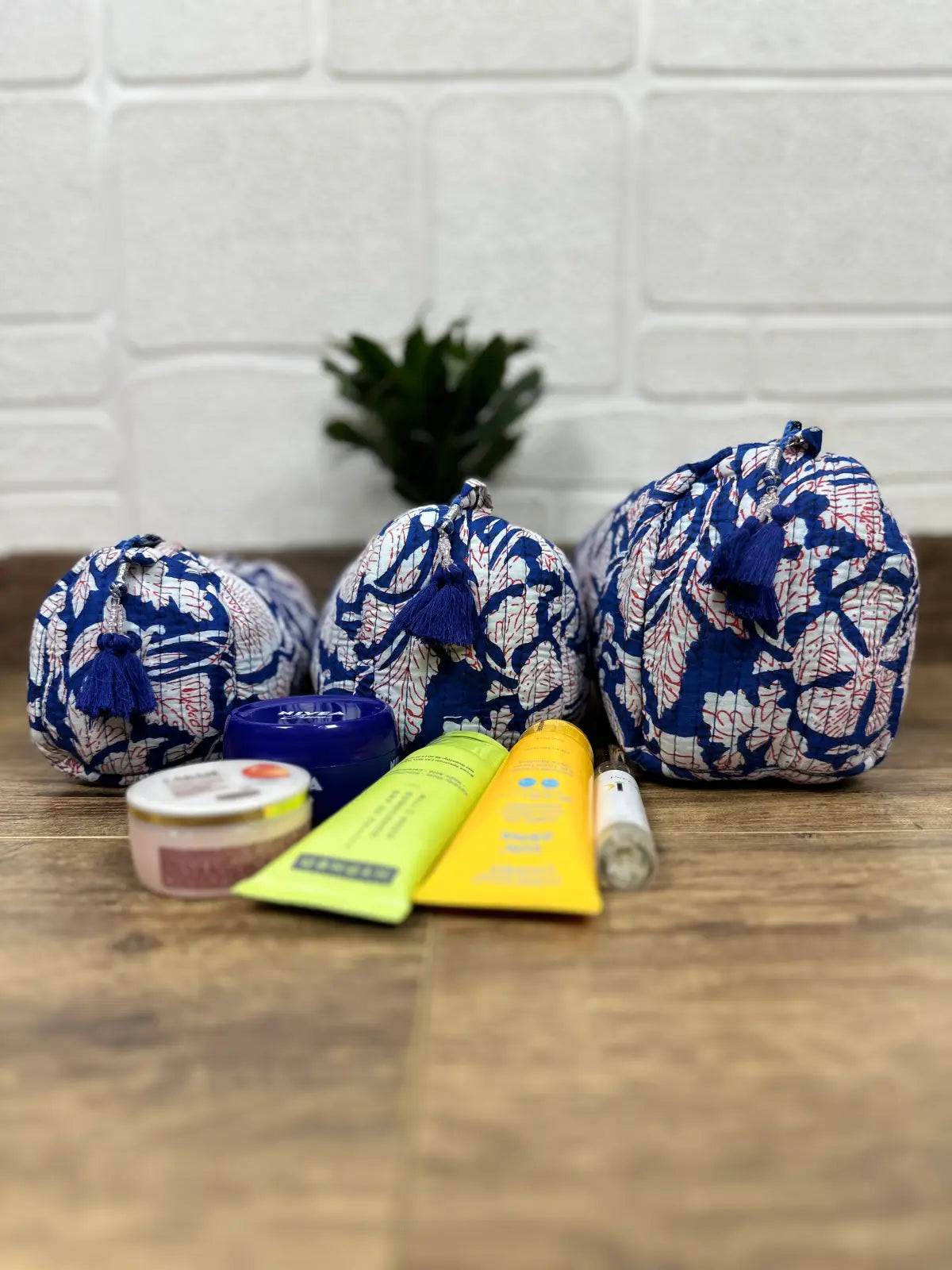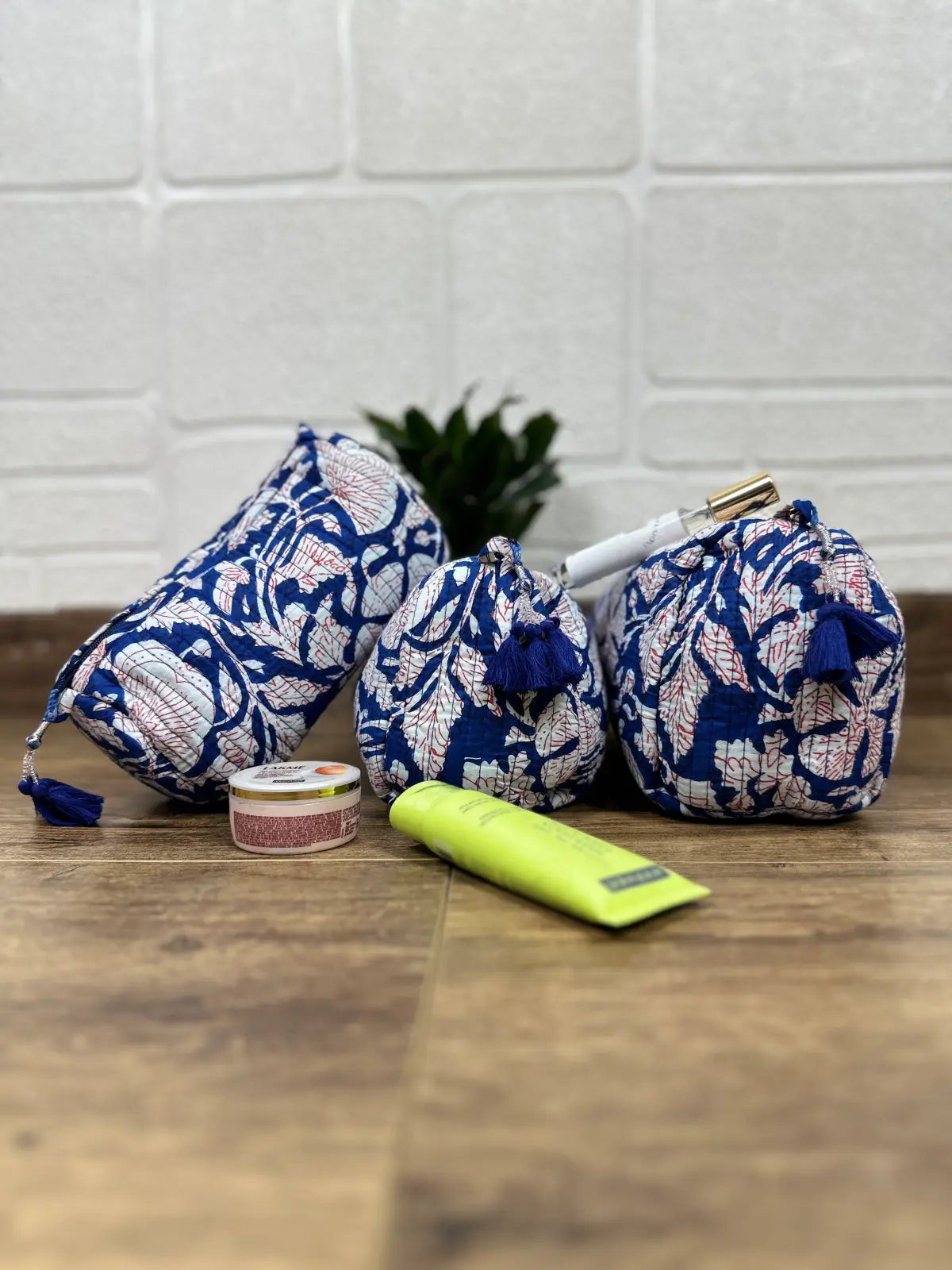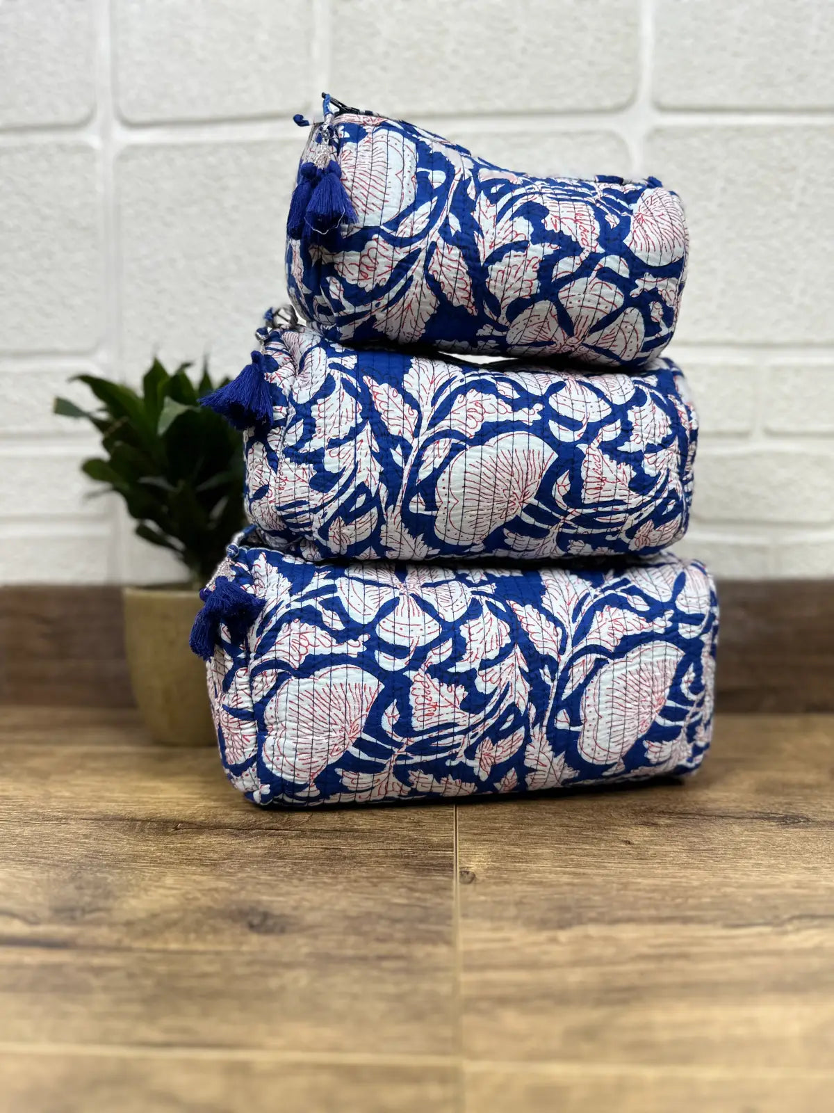 Block Print Toiletry & Makeup Bag | Quilted Wash Bag | Set of 3