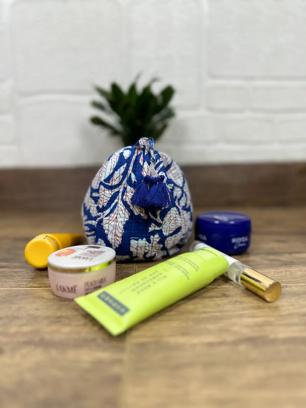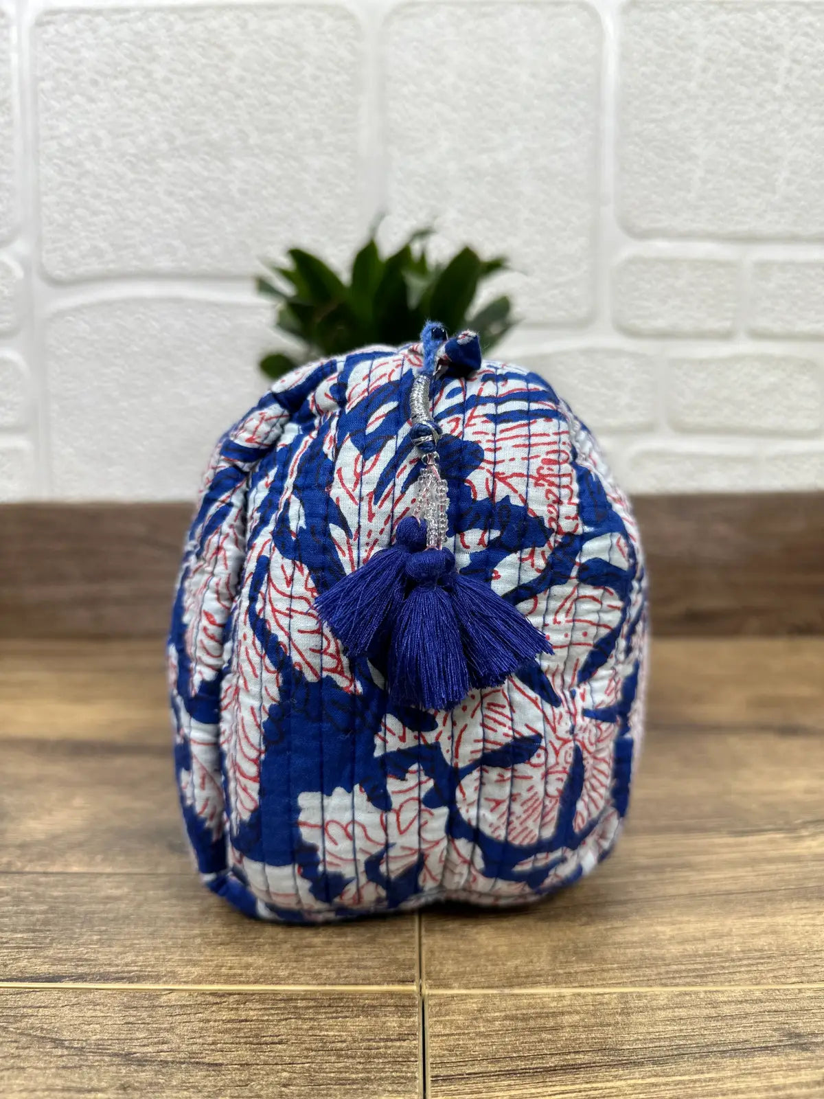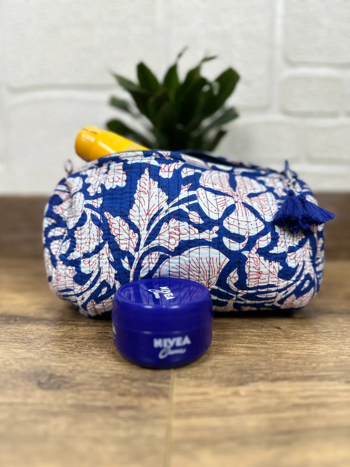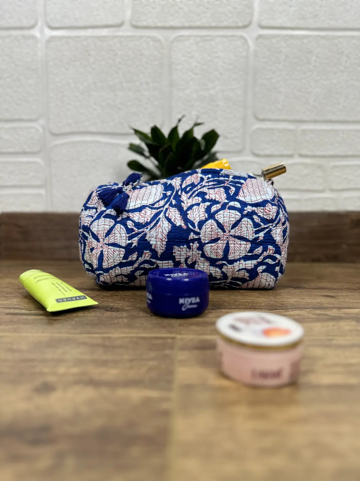 Block Print Toiletry & Makeup Bag | Quilted Wash Bag | Set of 3