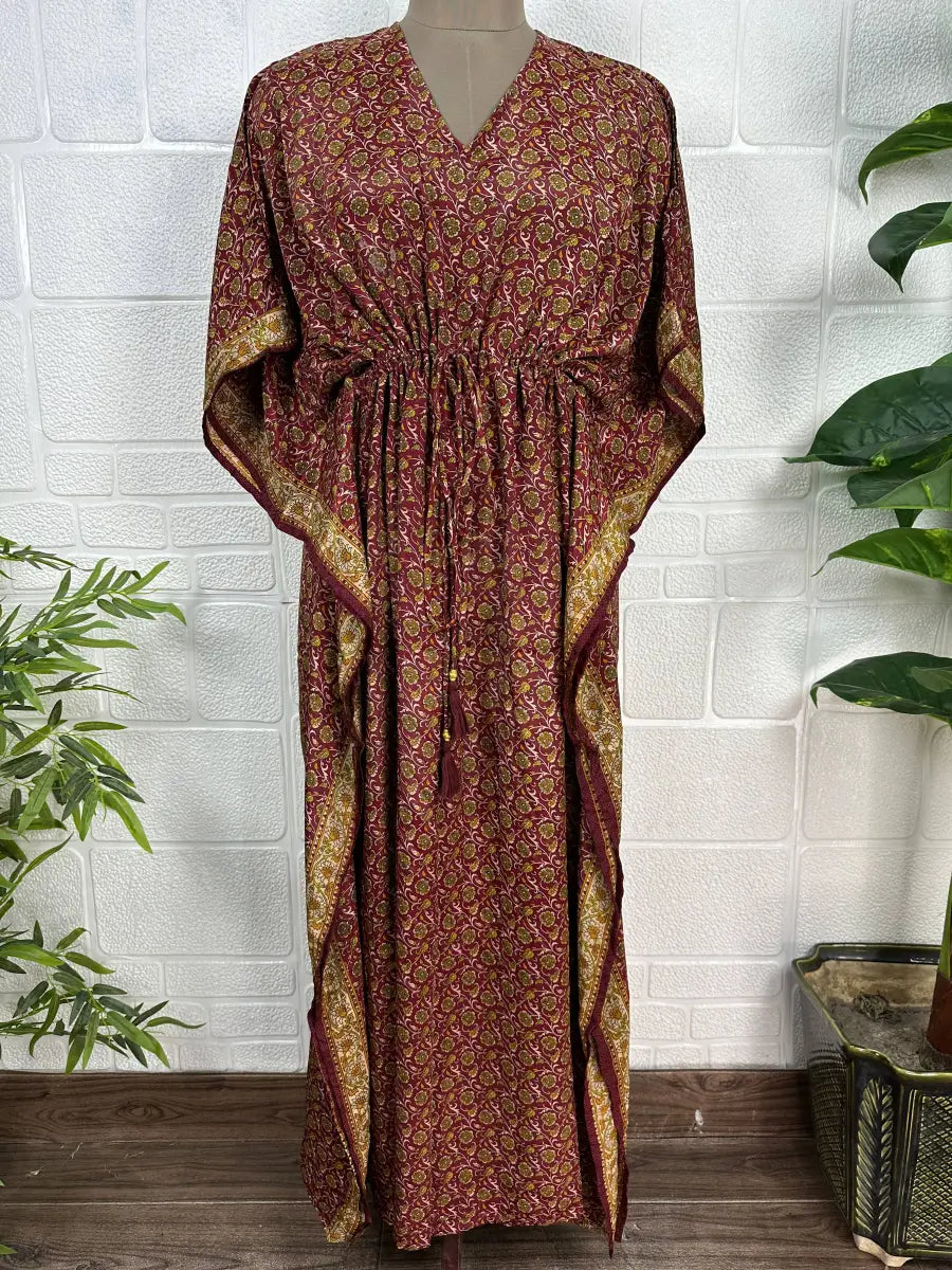 Silk Blend Maxi Dress Women, Summer Loose Fit Luxury Lounge Caftan Beachwear Nightie Nightdress, Flowy Gown Plus Size Modest Dress for Her