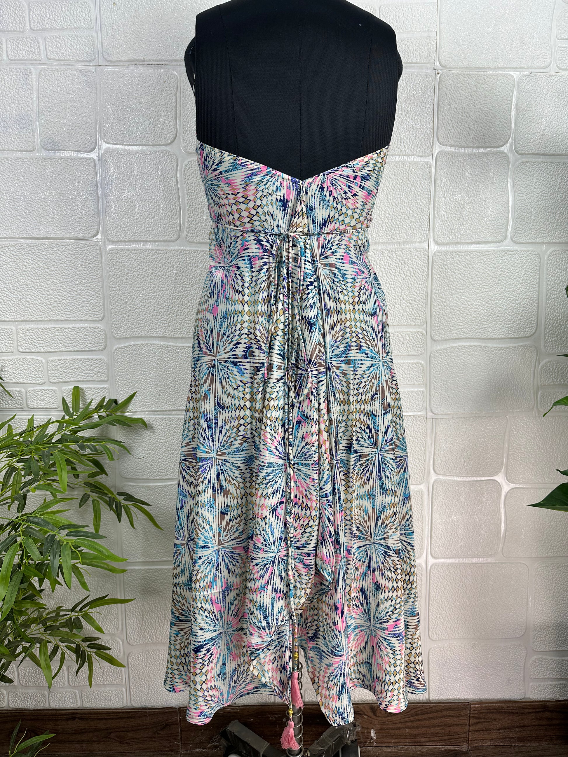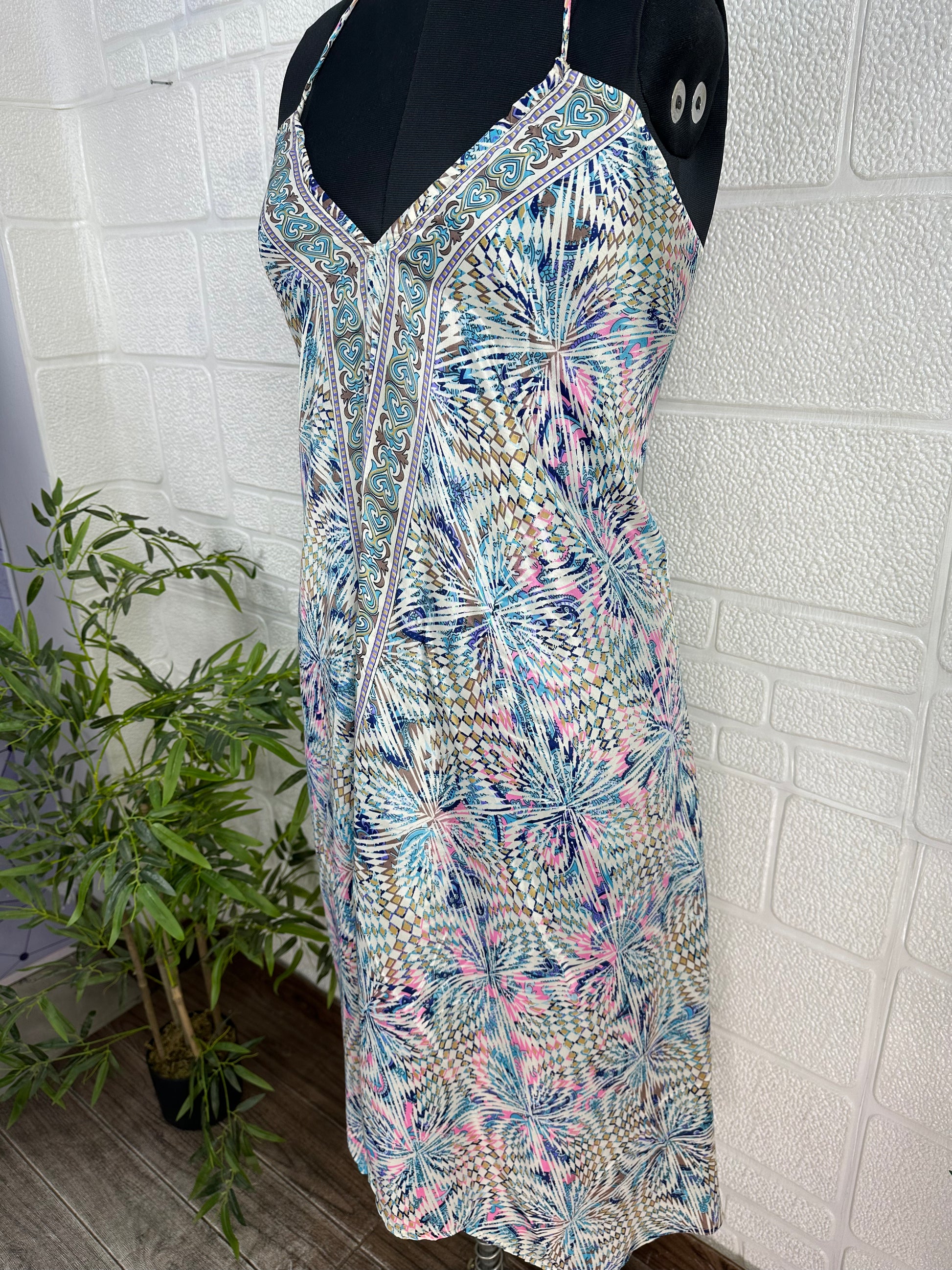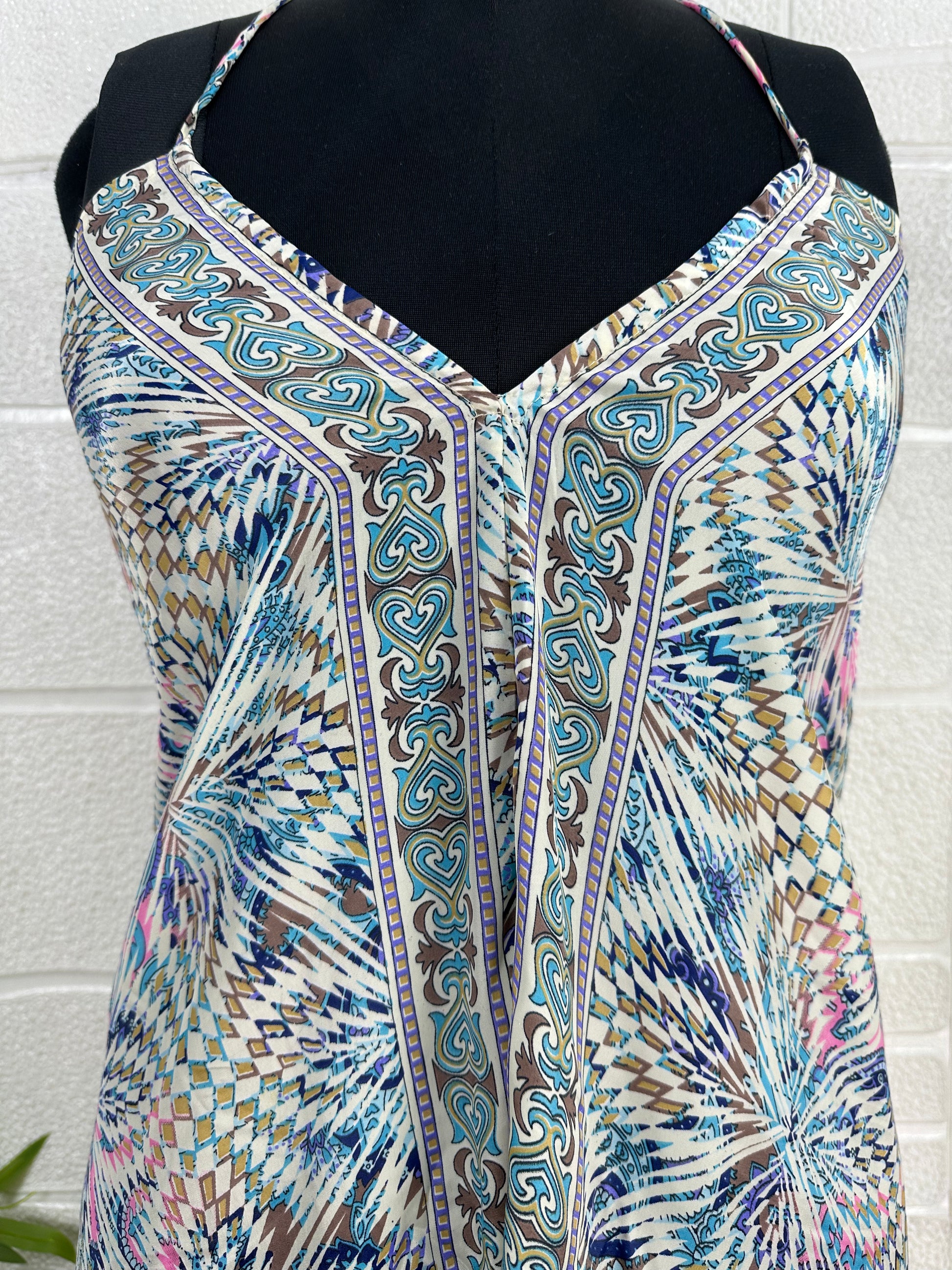 Handmade Maxi Halter Dress, a stunning blend of vintage charm and modern elegance, perfect for any occasion. This handmade artisanal piece is inspired by the vibrant 70s, featuring a beautiful floral pattern that captures the essence of spring and summer. This dress is designed to make you stand out whether you're at the beach, a wedding, or a cocktail party.