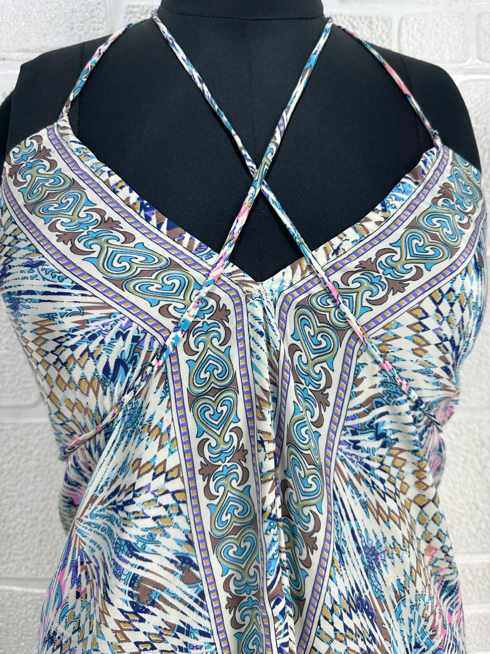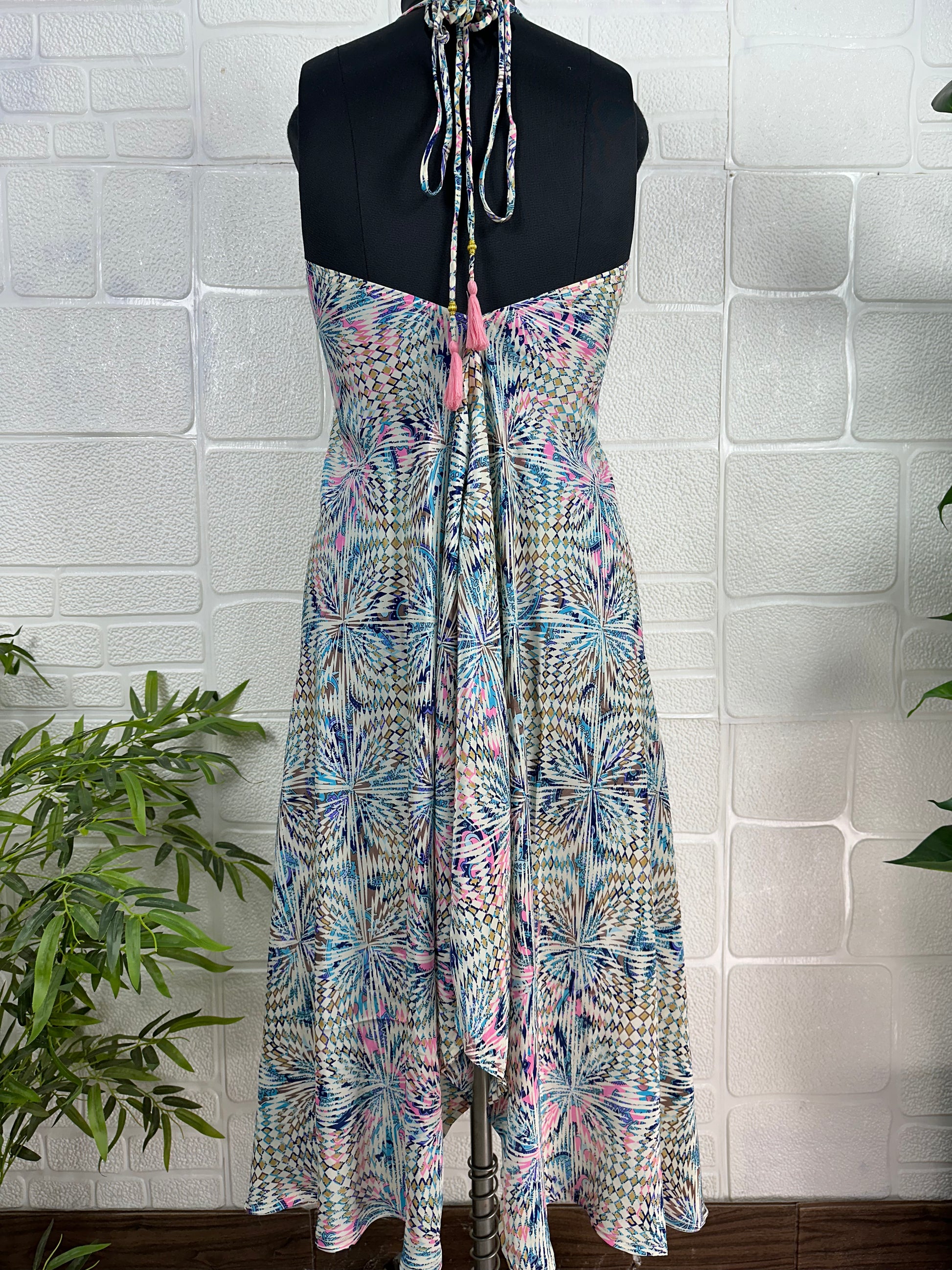 Crafted with care, our dress channels bohemian fashion with a touch of Mexican artistry, embodying the free spirit of the Boho Hippie style. The halter neckline and midi length offer a flattering silhouette, while the sundress design ensures comfort and style in warmer weather. This versatile piece can effortlessly transition from a casual day out to a sophisticated evening event, making it an ideal choice for a prom or as a wedding guest dress.