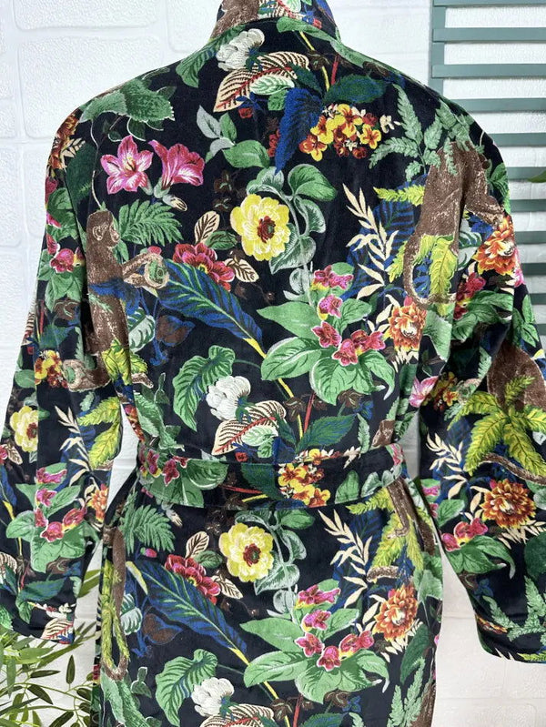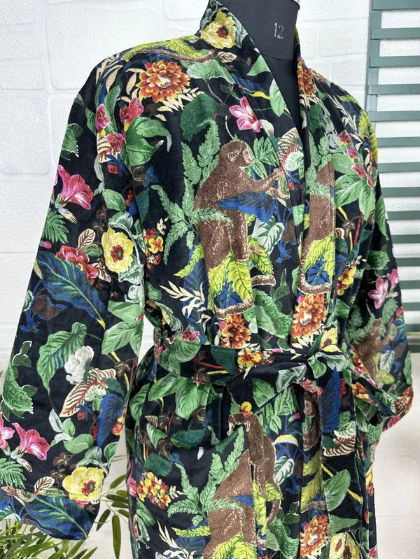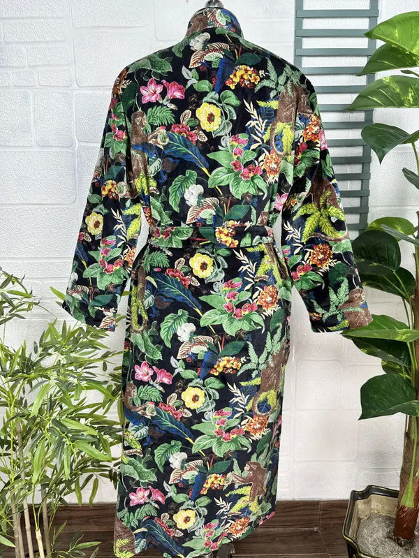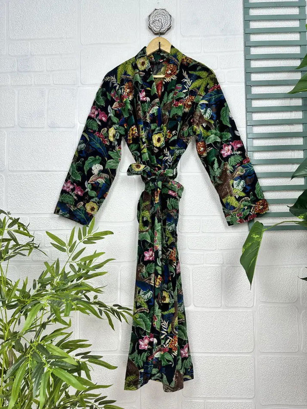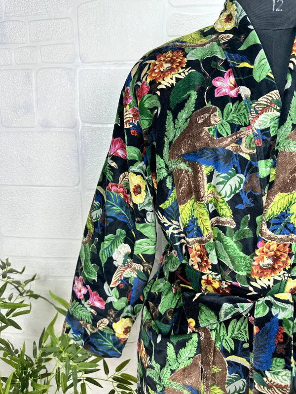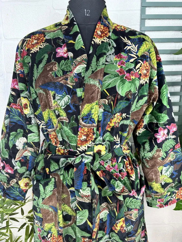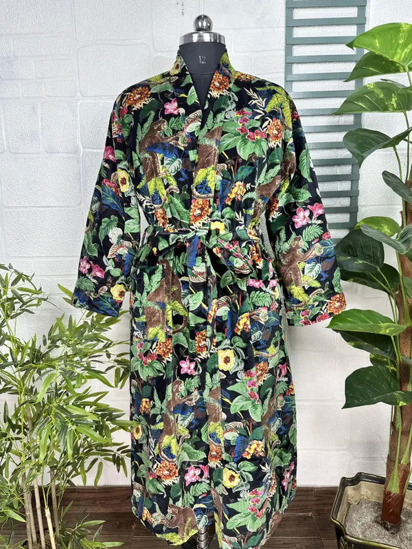 Luxus Samt Haus Robe Unisex Kimono Jacke Wendbar Seide Gefüttert Herbst Winter Geschenk Elegant Ikat Grün Malibu Bläulich Valentinstag Liebe