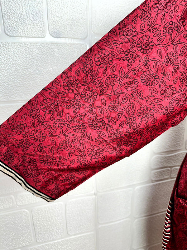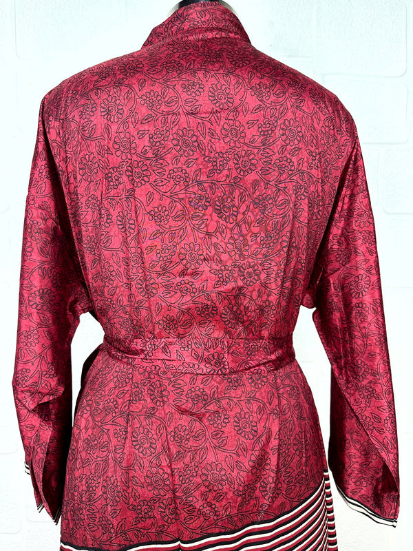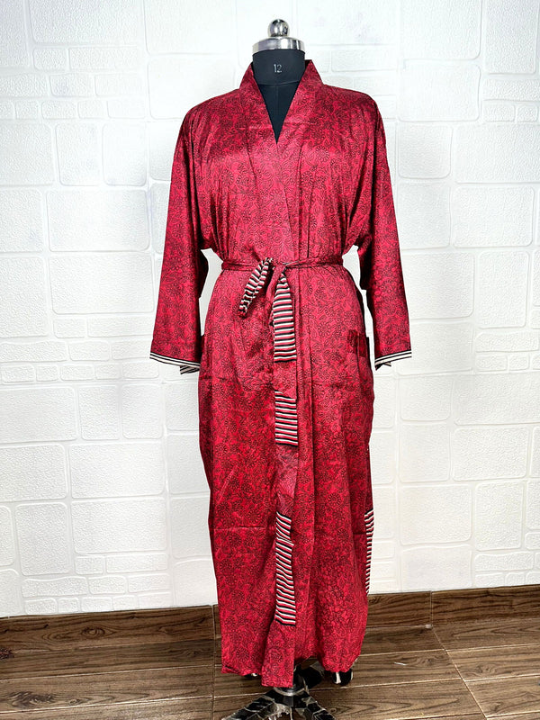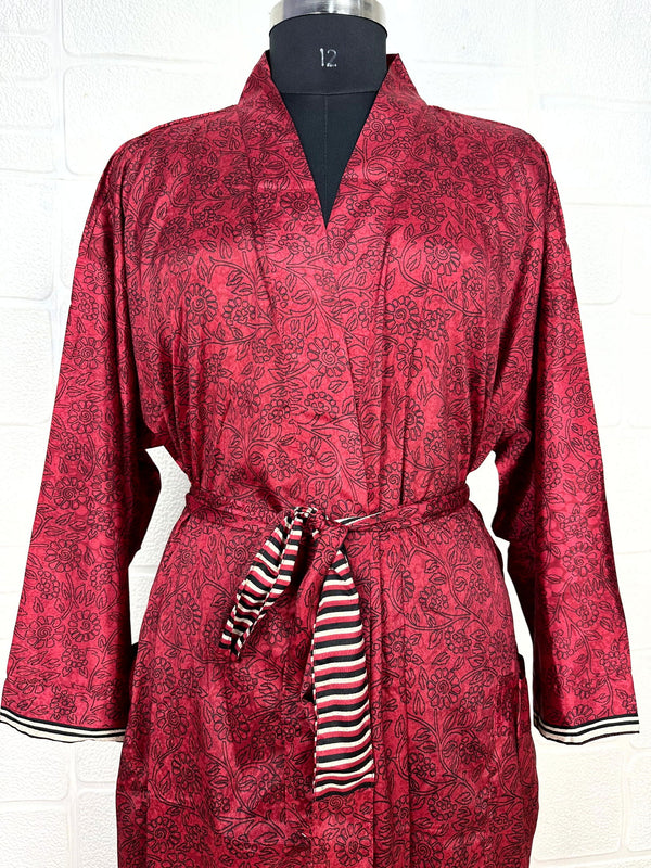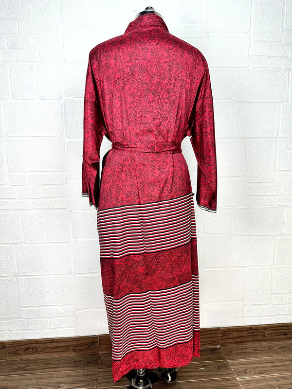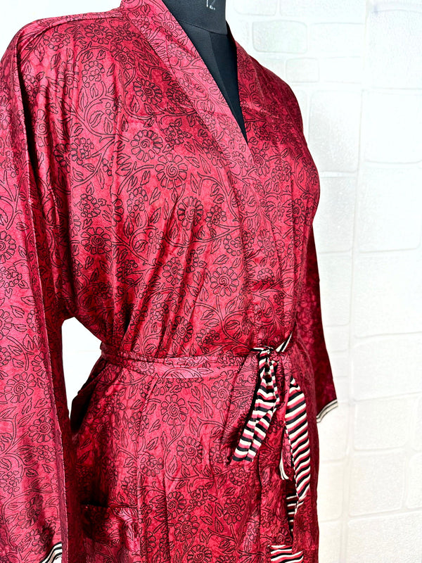 Recycle Boho House Robe Kimono Vintage Silk Sari Dressing Gown, Beach Coverup, Bridesmaid, Anniversary Gift Her | Floral Print