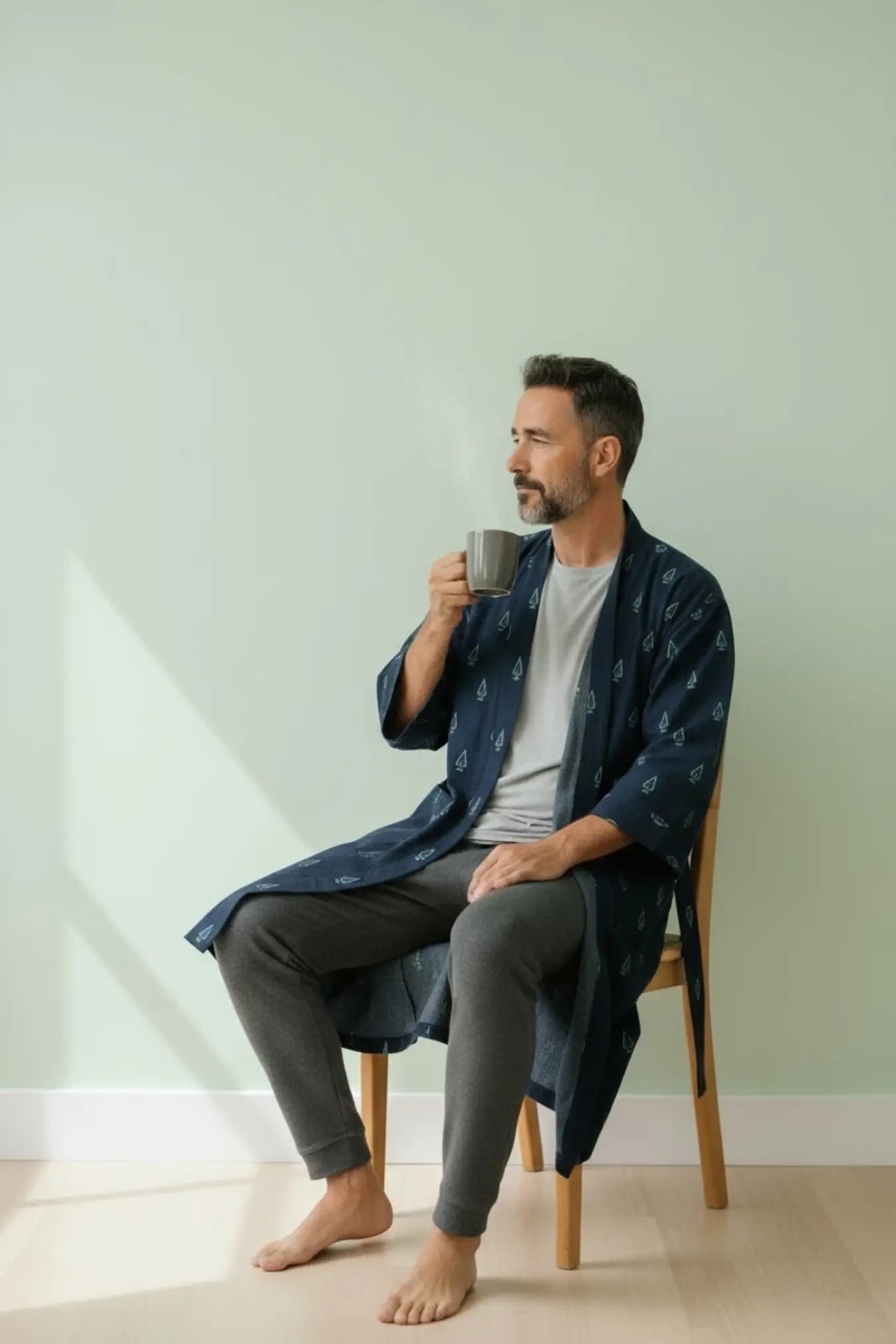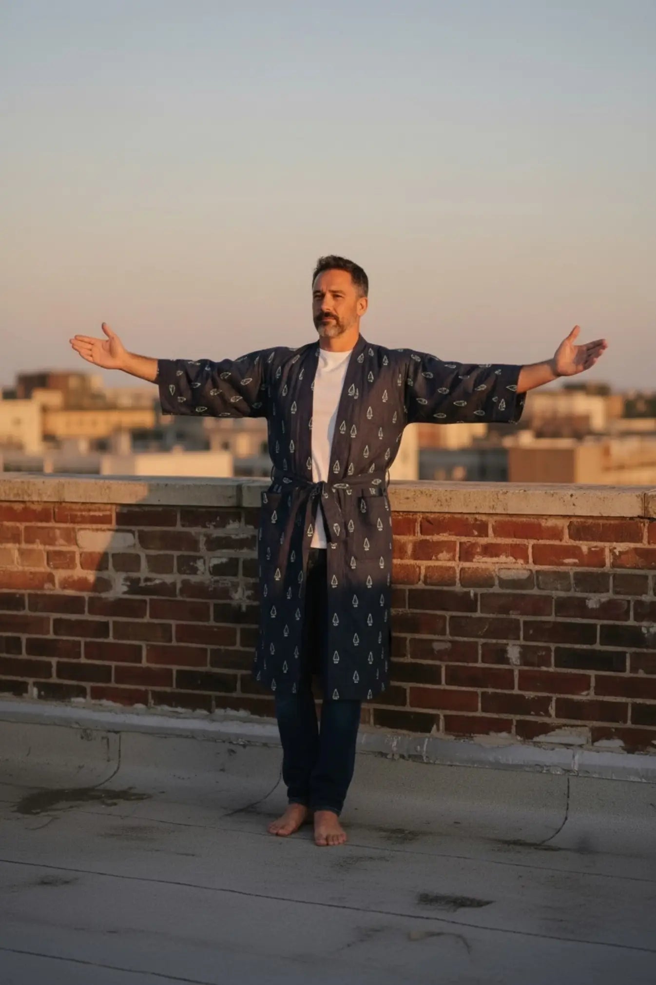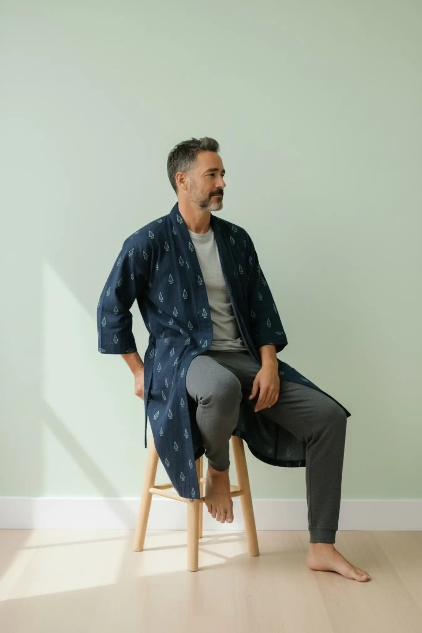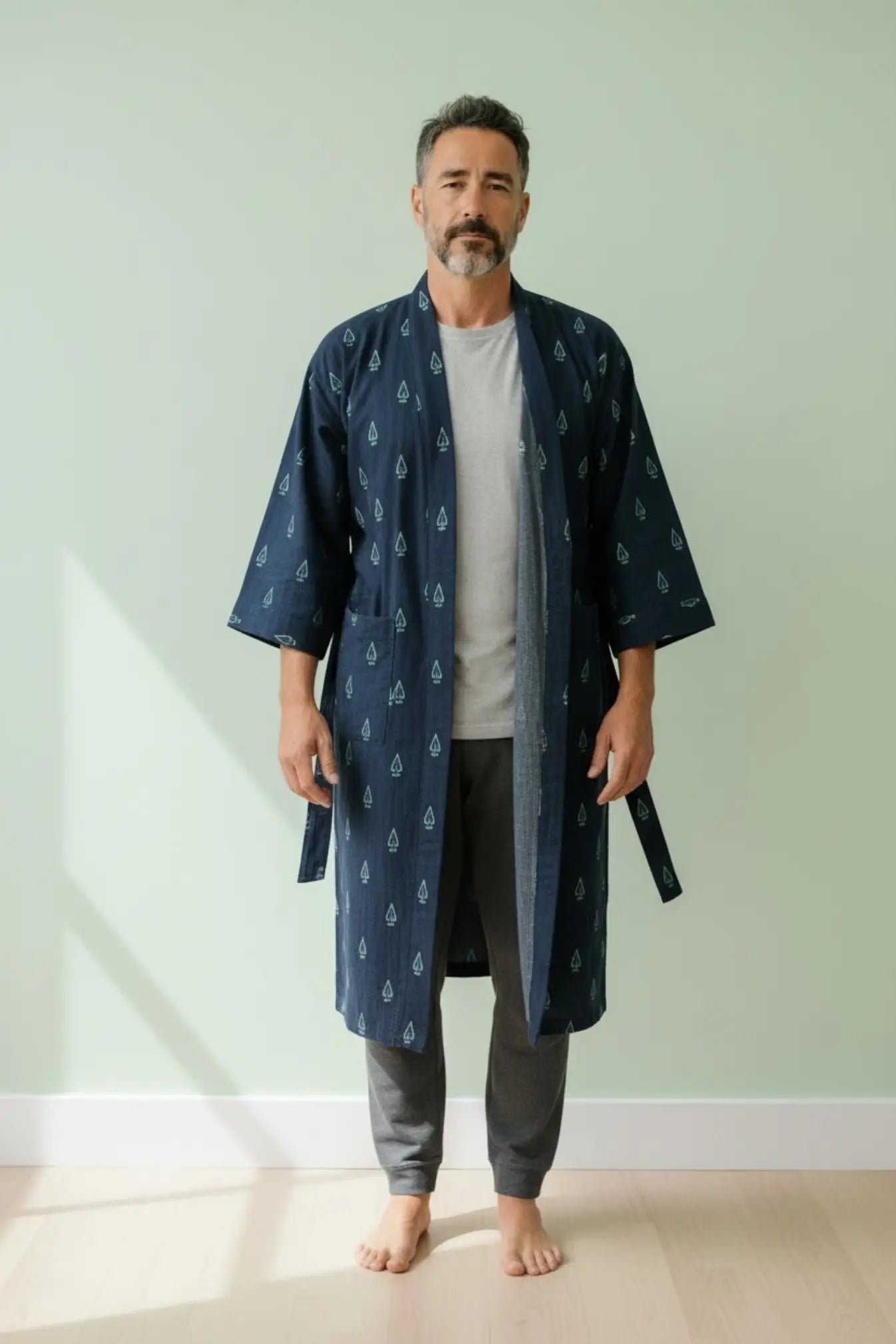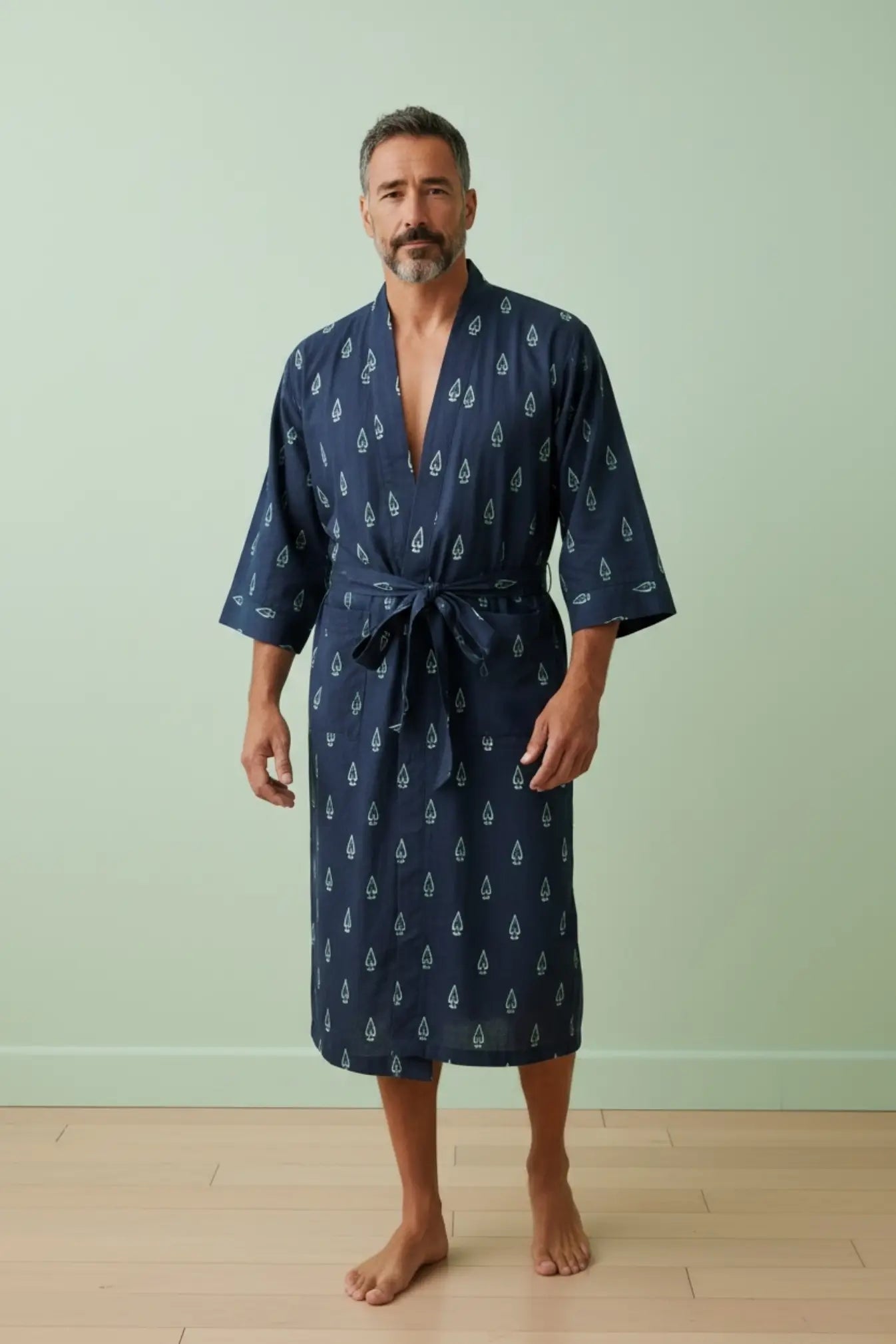 This Pure Cotton Handblock Kimono offers breathable comfort, artisan quality, and versatile styling—an effortless men’s house robe designed for everyday relaxation.