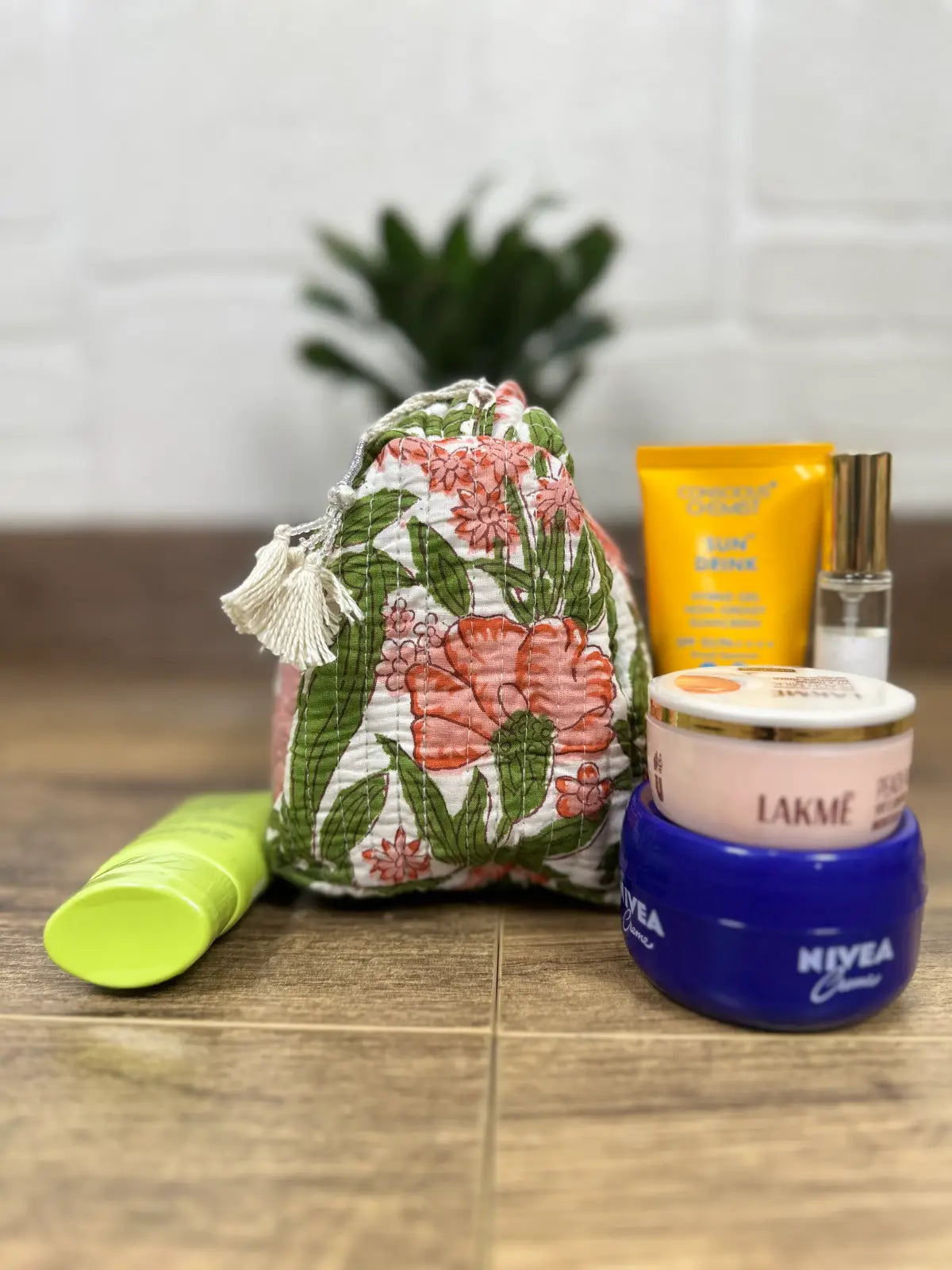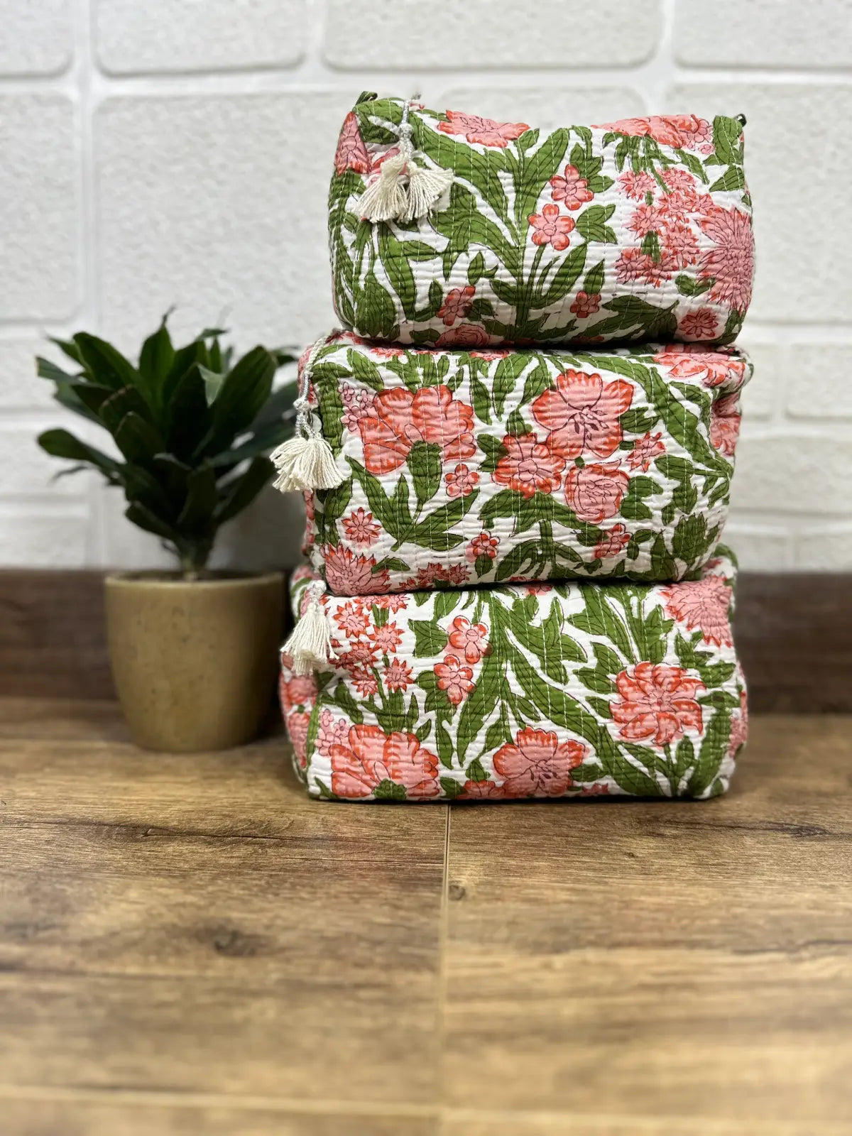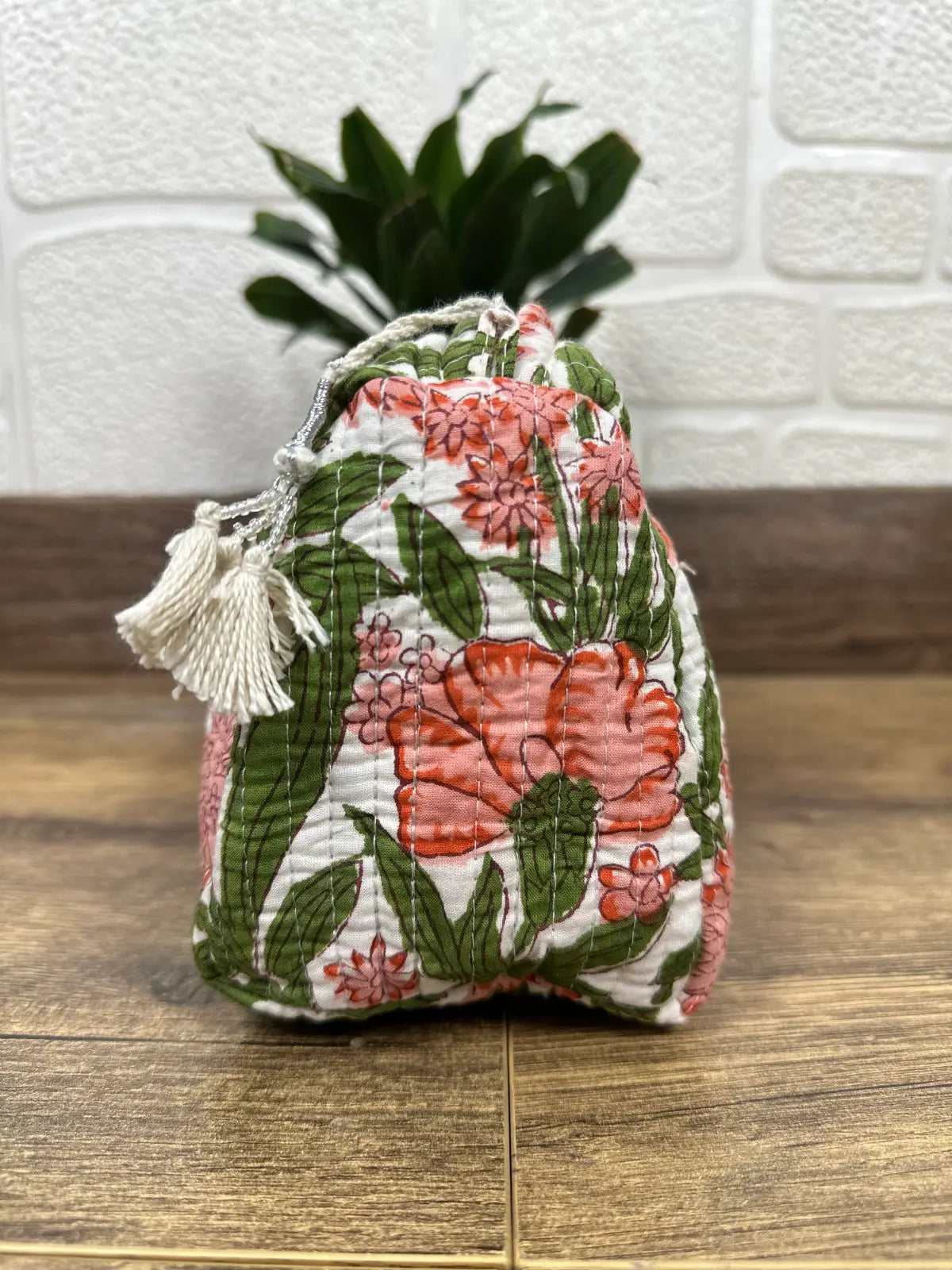 Block Print Toiletry & Makeup Bag | Quilted Wash Bag