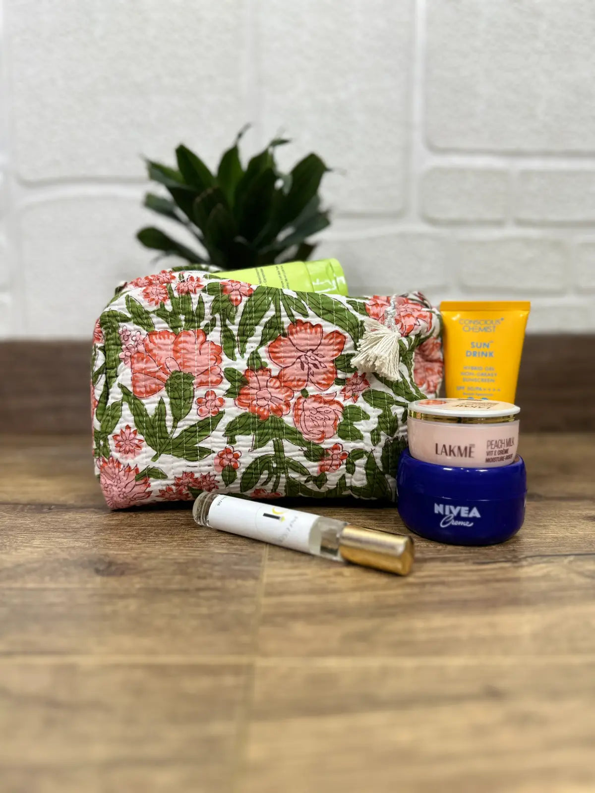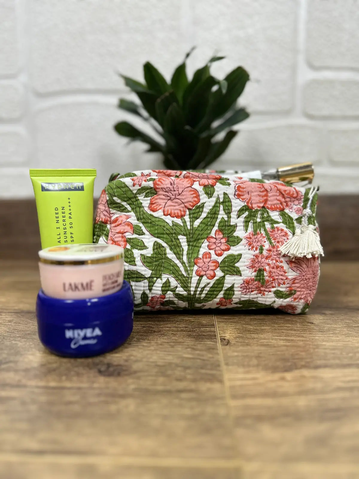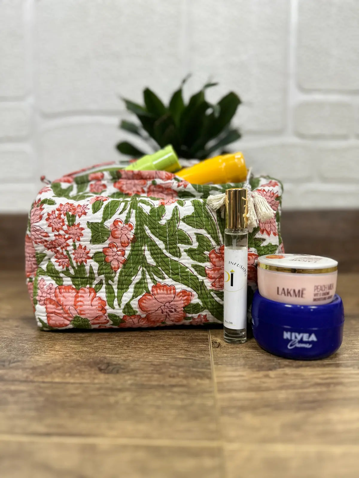 Block Print Toiletry & Makeup Bag | Quilted Wash Bag