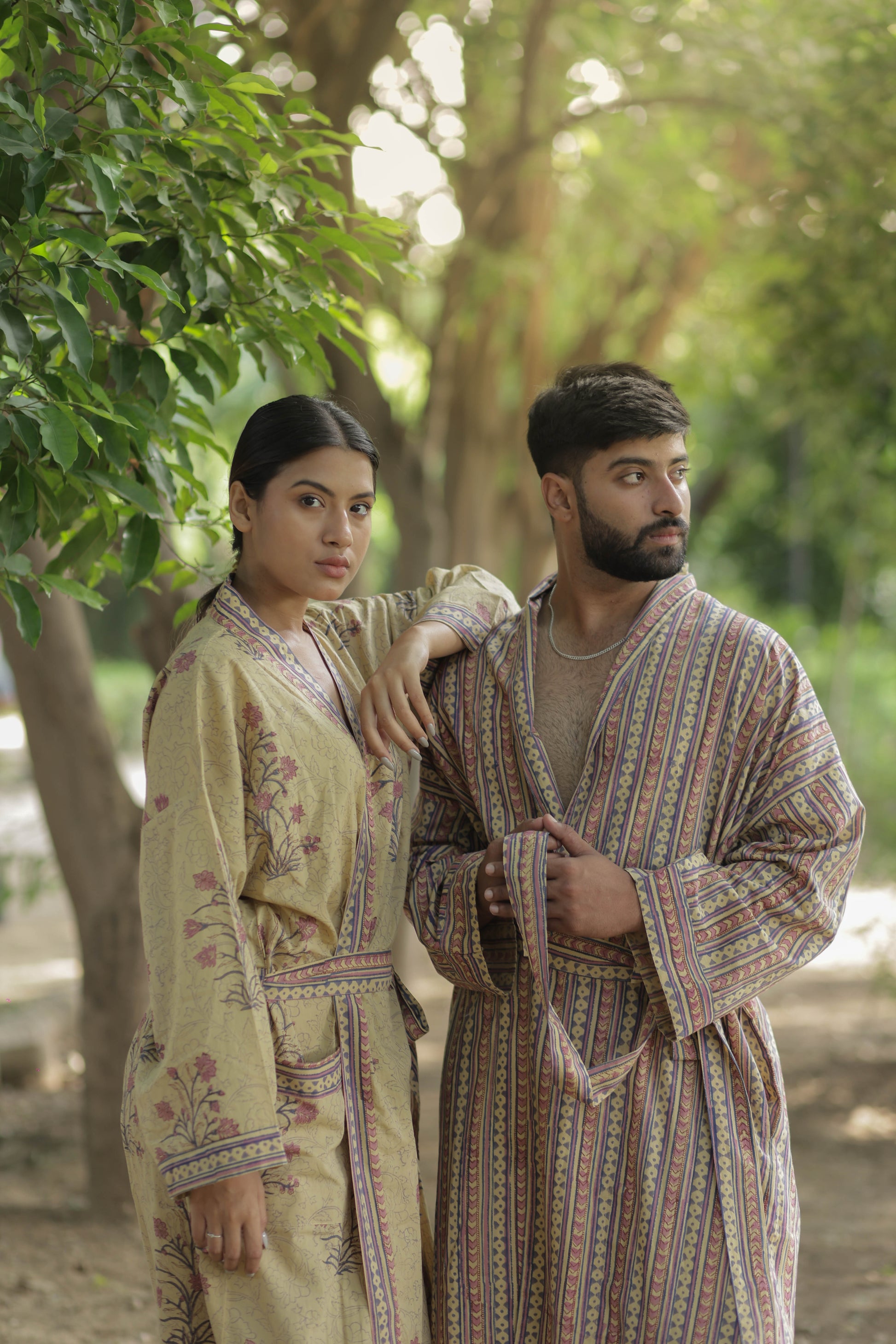 Elevate your relaxation and style with The Eastern Loom’s Men’s Cotton Kimono Robe—where comfort meets timeless design.