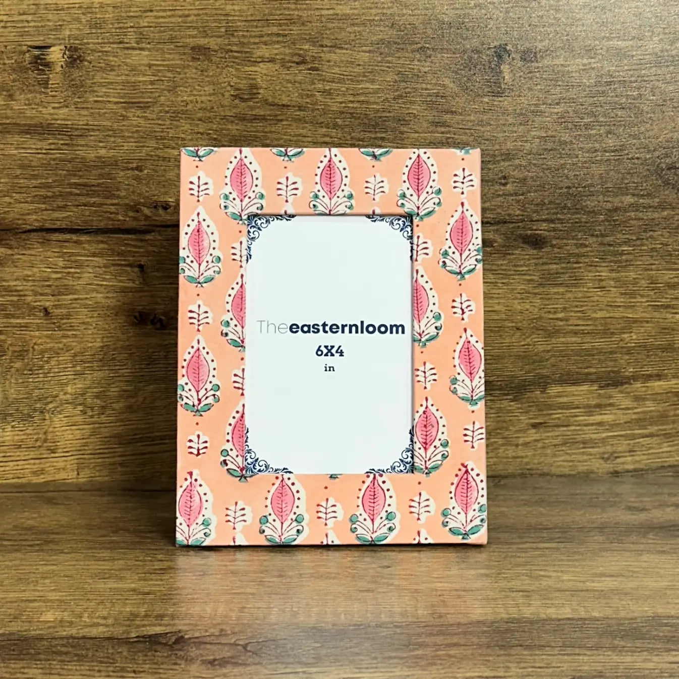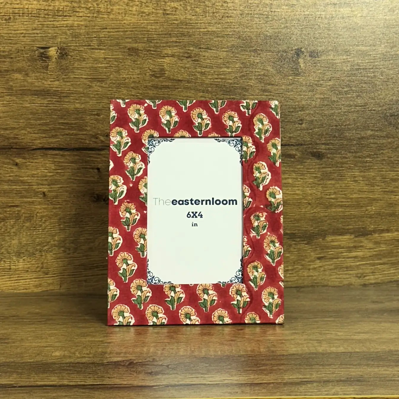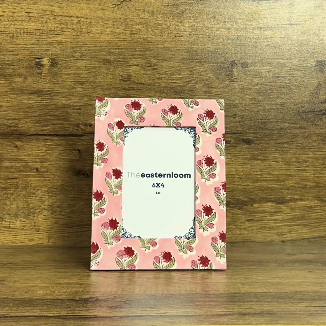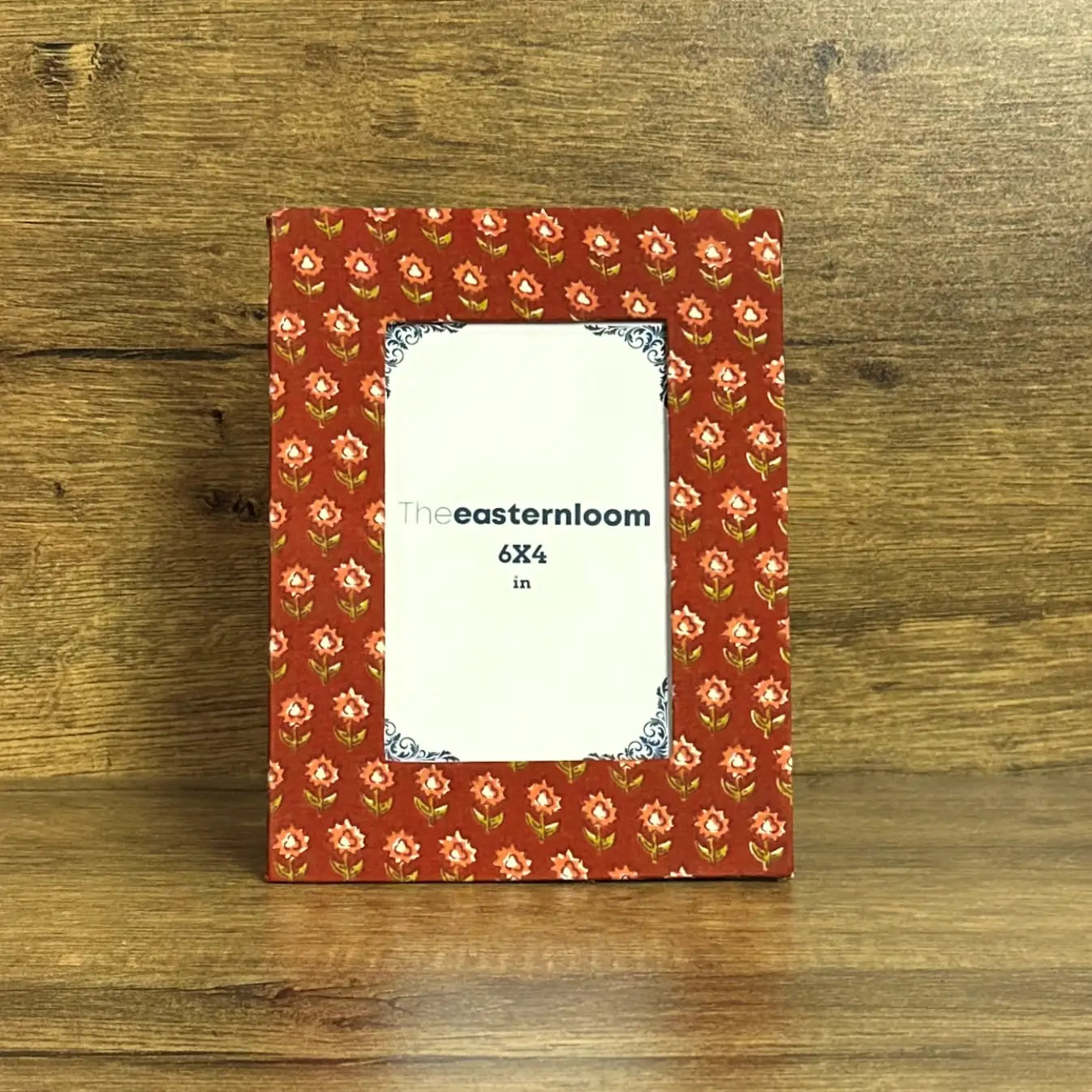 Picture Frame is a thoughtfully crafted Cotton Fabric Wrapped Desktop Frame designed to showcase meaningful photographs with charm and sustainability. Featuring a delicate Floral Print Photo Frame surface created using Handblock Printed Picture Frame Stand techniques, this piece reflects traditional artistry combined with modern eco-conscious values.