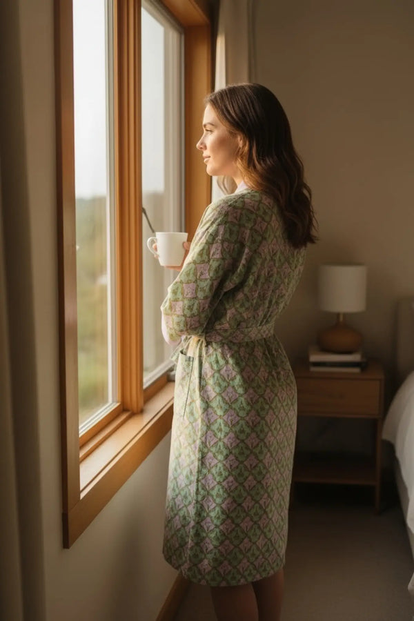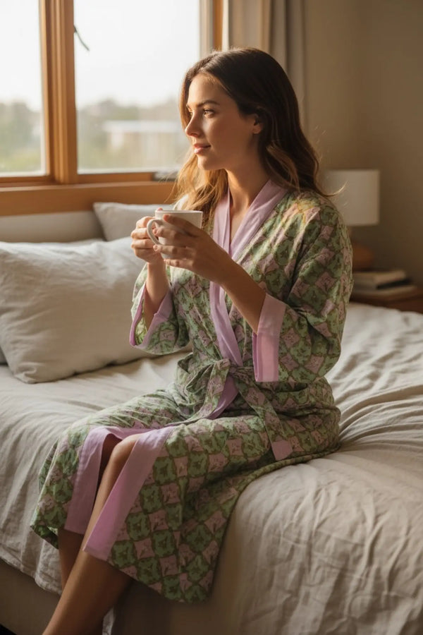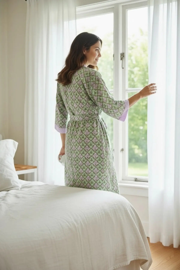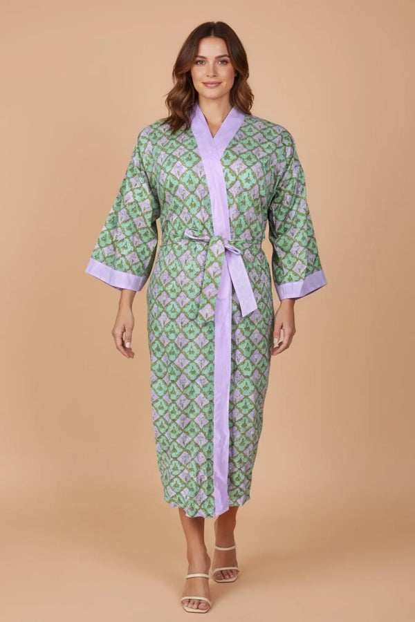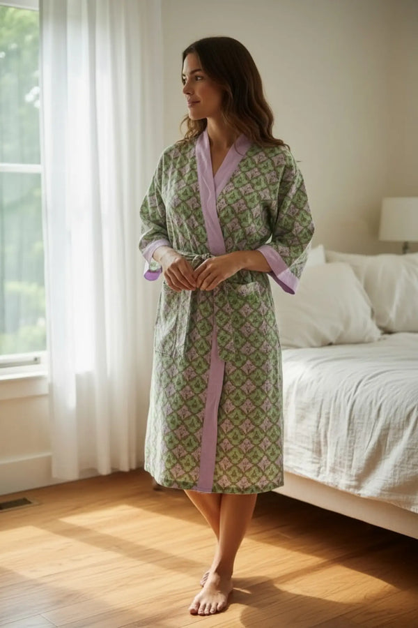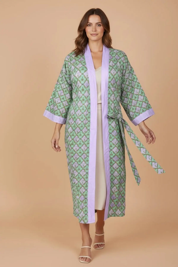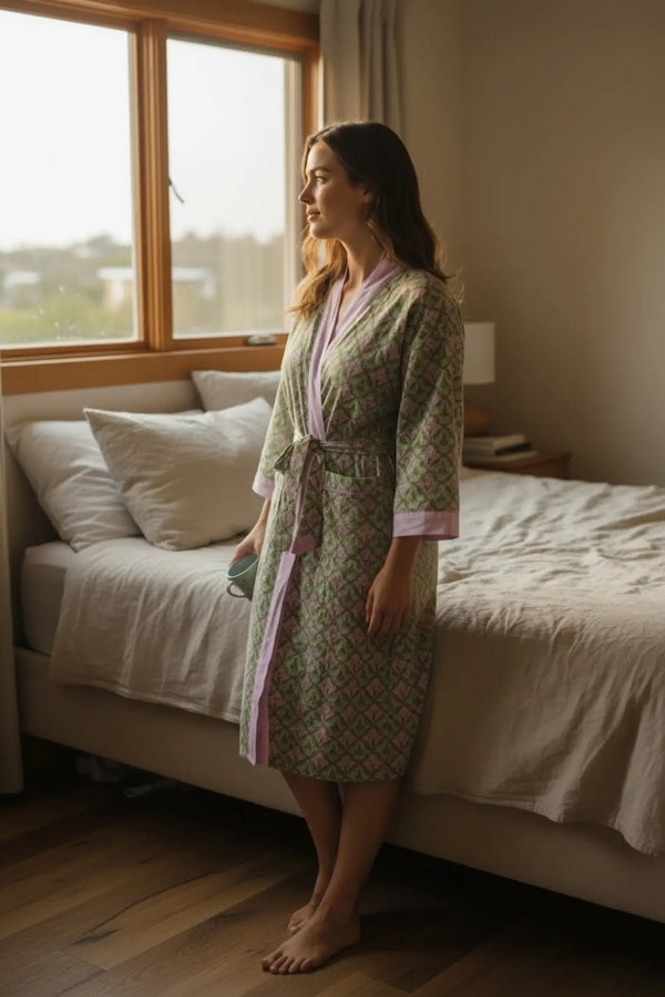 Pure Cotton Handblock Kimono | Indian Printed Summer House Robe, Boho Beach Coverup Kaftan, Bridesmaid Maternity Dressing Gown, Gift For Her