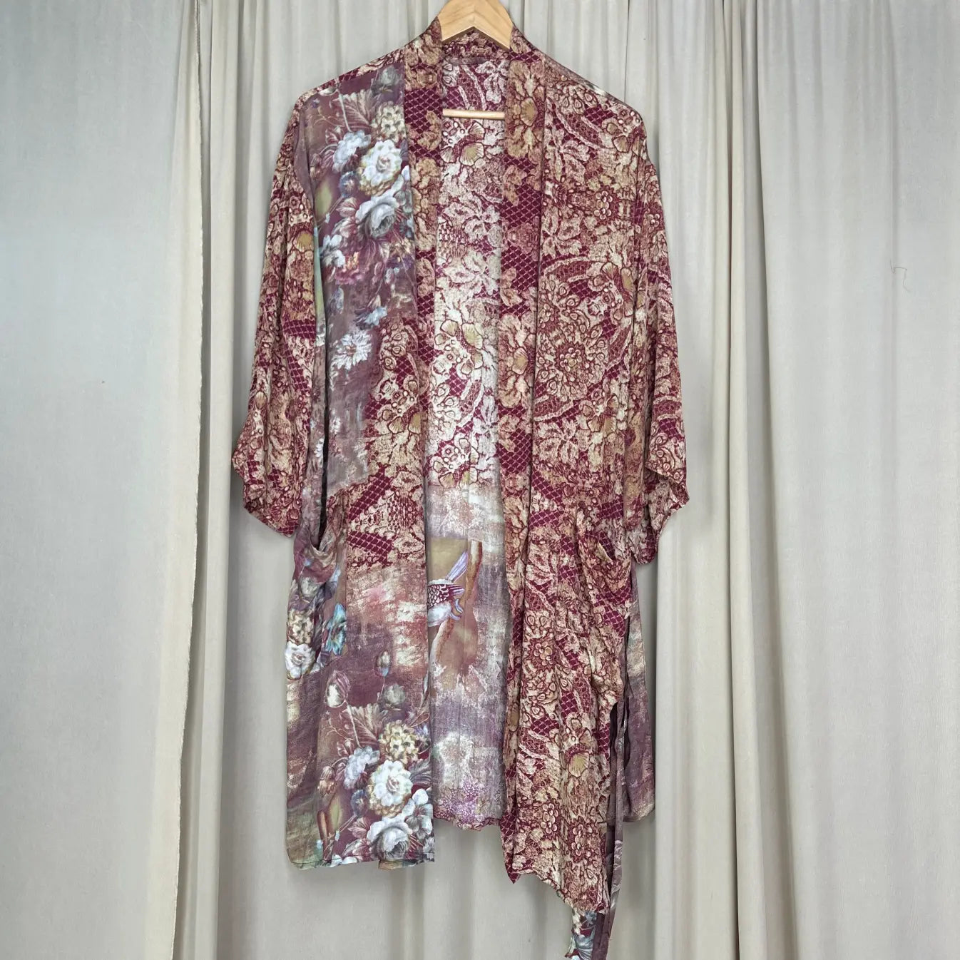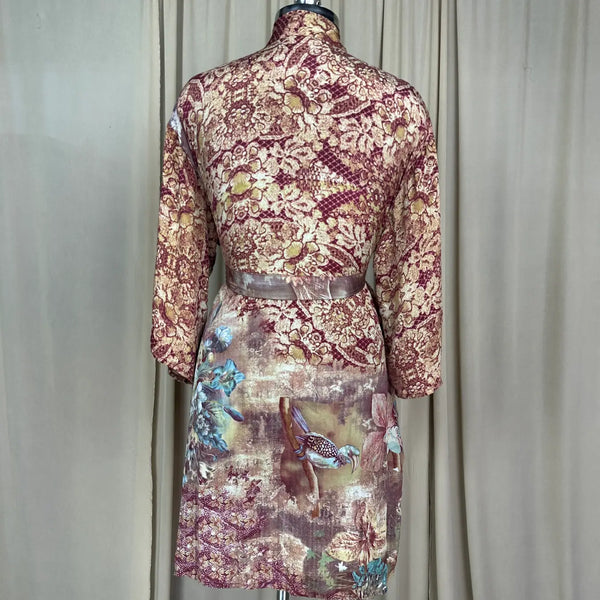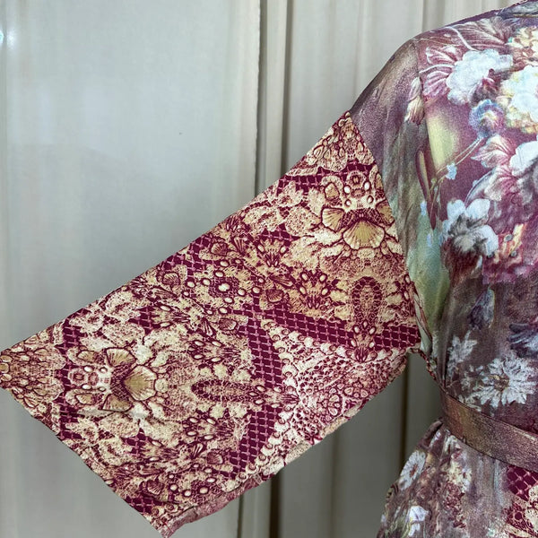 Vintage Silk Sari Boho Kimono | Luxury Loungewear House Robe Flowy Gown, Regal Floral Romance Duster Beach CoverUp, Bridesmaid Dressing Gown