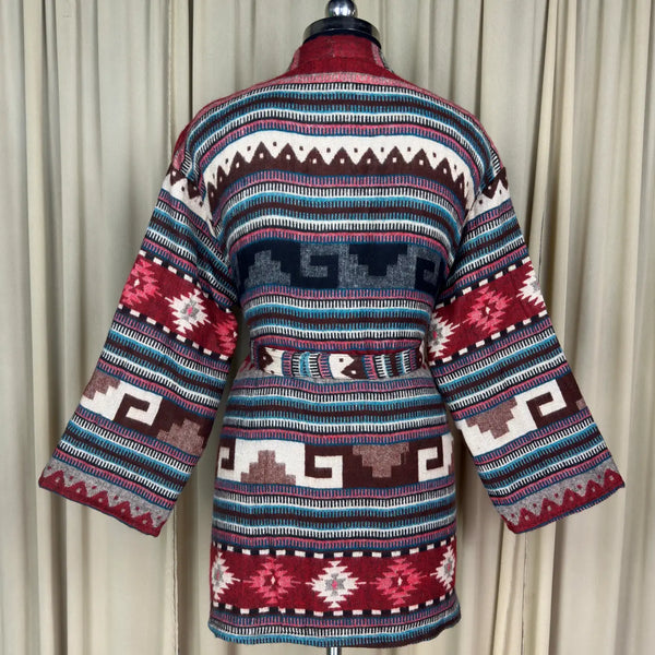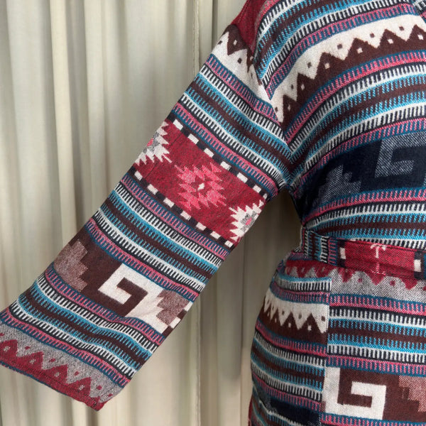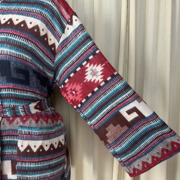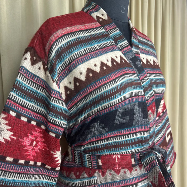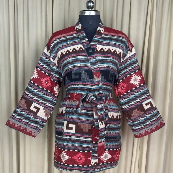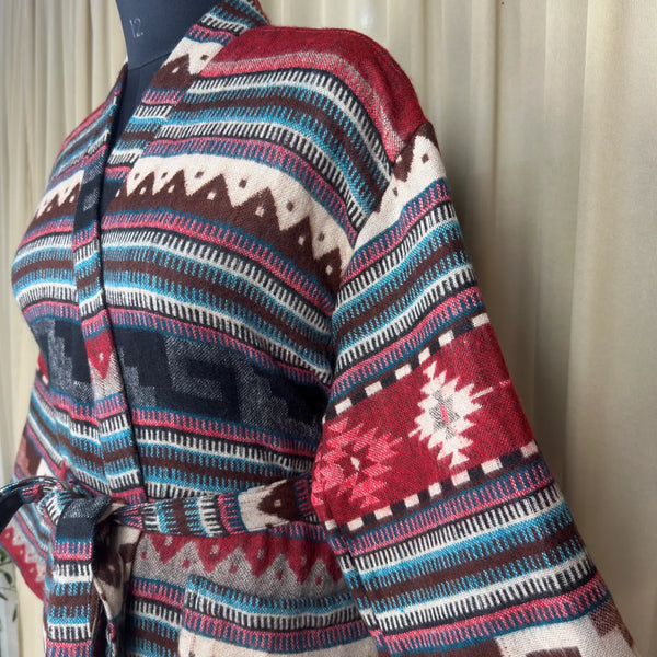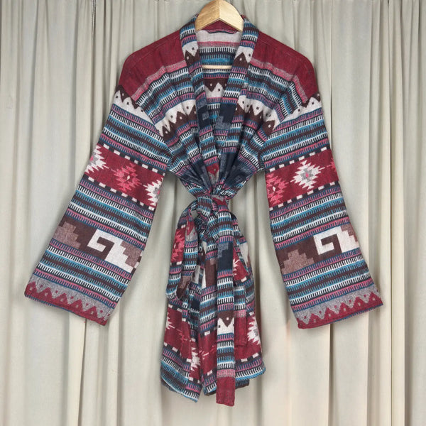 Wool Blend Women Kimono, Winter House Robe Warm Cozy Jacket Short Dressing Loungewear Geometric Cardigan, Handmade Mom Gift Someone Special