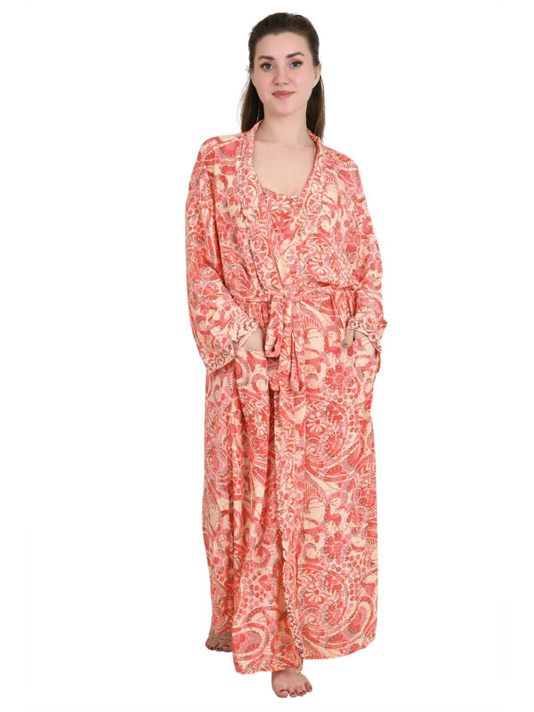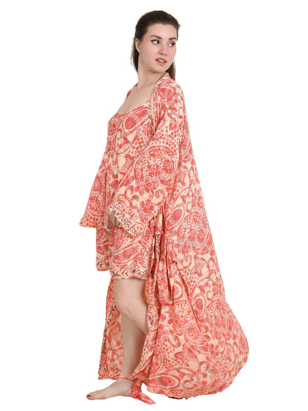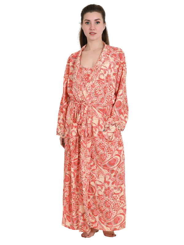 Silky Sari Pyjama Kimono Cami Top Boxer Set of 3 Night Suit Sleep Wear Luxury Lounge Boho Dress Royal Beach Cover Up Floral Paisley Cardigan Gift For Her