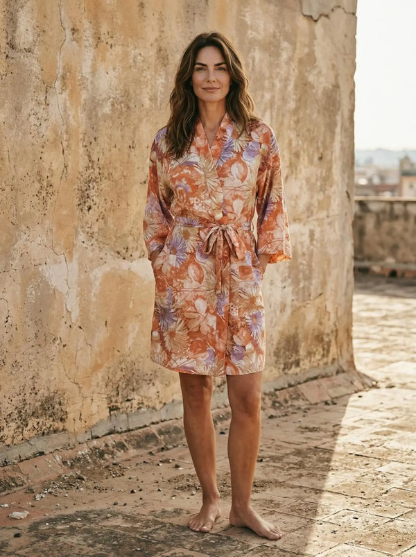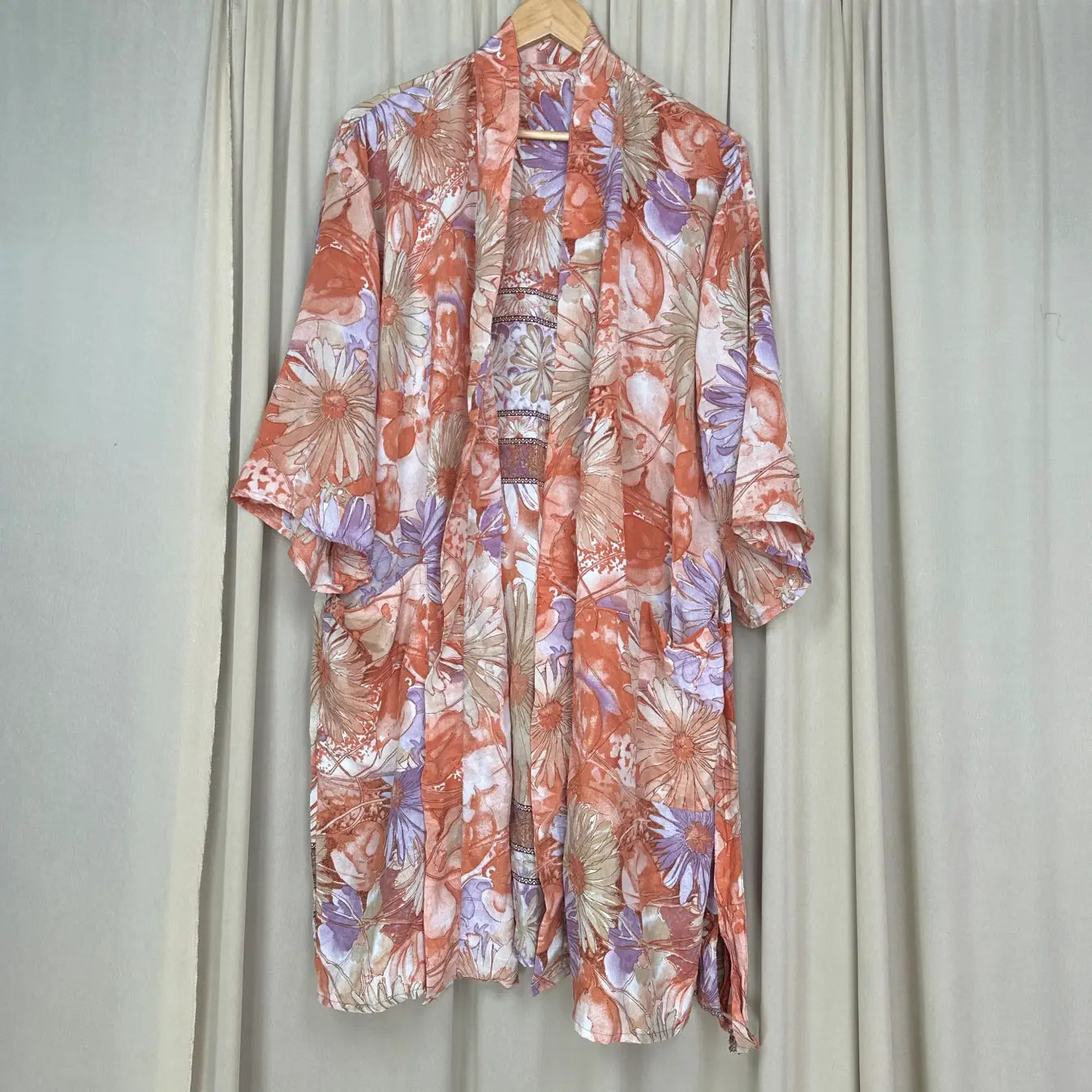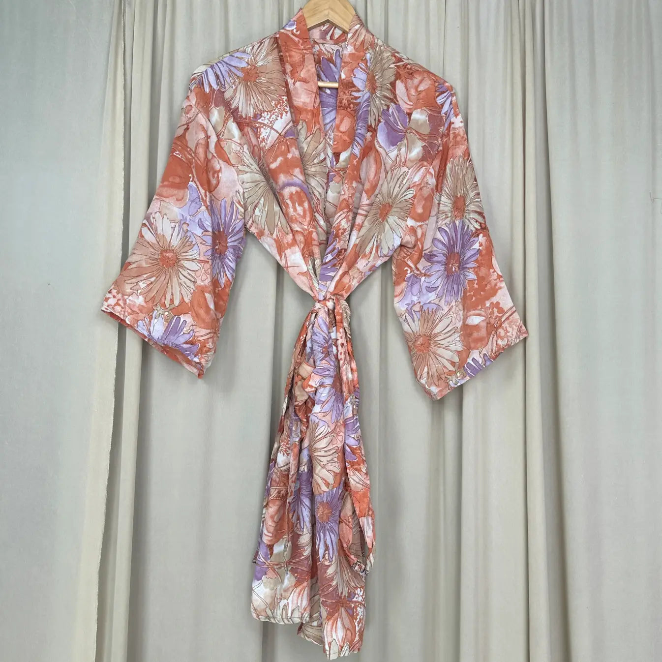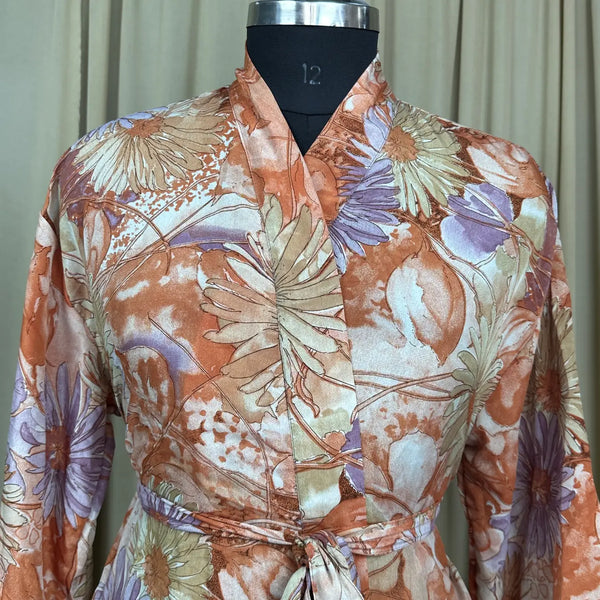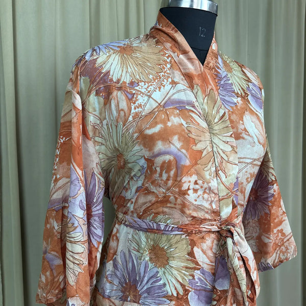 Vintage Silk Sari Boho Kimono | Luxury Loungewear House Robe Flowy Gown, Regal Floral Romance Duster Beach CoverUp, Bridesmaid Dressing Gown