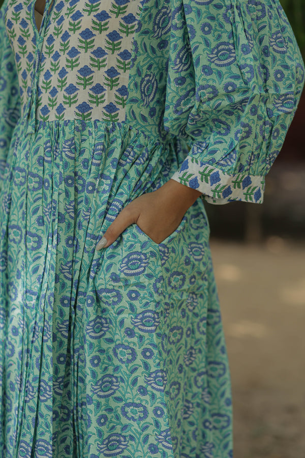 Please note: Due to the hand block printing process and variations in photographic lighting, colors may appear slightly different in person than on your screen. Each dress is individually crafted, ensuring that every piece is one-of-a-kind.